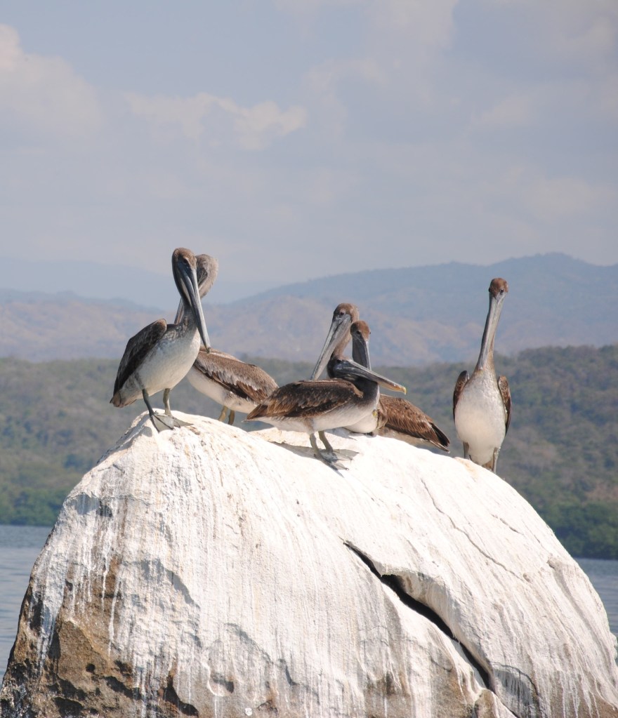 Je l’abandonne pour aller prendre mon bus, puis arrive, une heure et demie et un collectivo plus tard, au bord de la lagune de Pastoria, dans le village de Zapotalito. J’y fais la connaissance d’Emilie, entrepreneuse du Colorado, et Brian, voyageur Canadien, ayant fui la rigueur hivernale de leurs environnements respectifs. Nous embarquons dans une petite « lancha », qui traverse la magnifique lagune. Sur un îlot recouvert de cactus nichent de nombreuses frégates, tandis que les pélicans prennent le soleil sur quelques cailloux émergeants des eaux brunes du lac.
