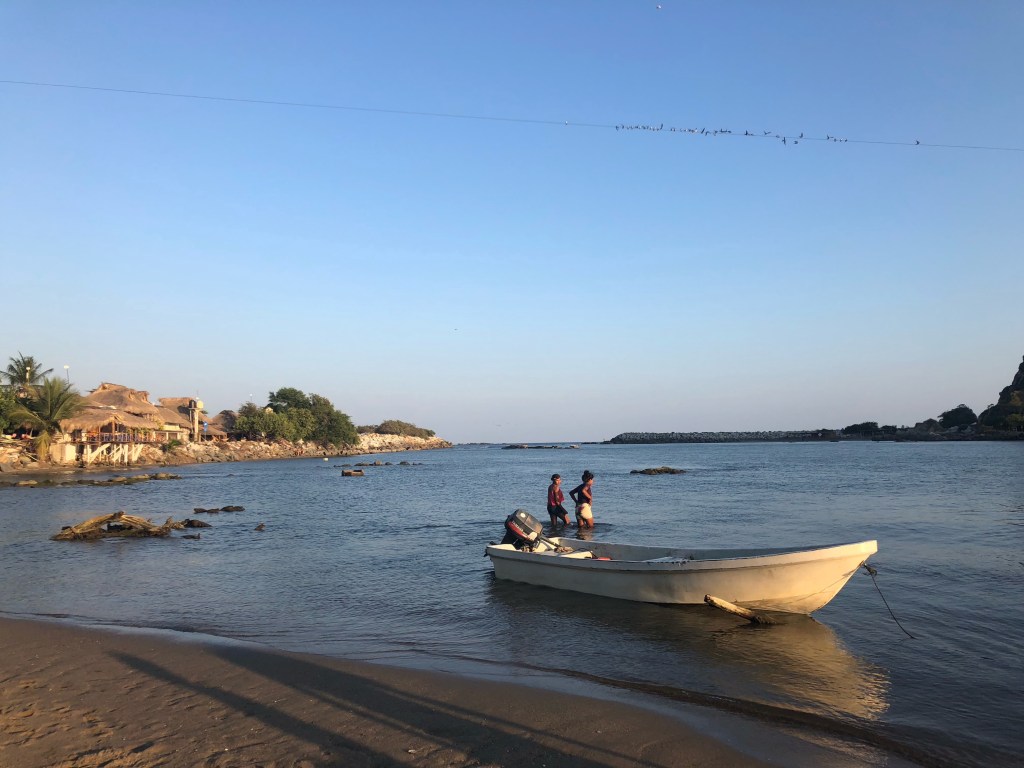 En effet, une “lancha” nous attend à 11h pour retraverser les lagunes jusqu’à Zapotalito. Nous saluons la pétillante Émilie, qui profitera encore quelques jours des vagues de Chacahua, et embarquons avec deux excentriques anglais. La première, une rousse androgyne, arbore une chemise de flanelle et des mocassins à gland, par trente degrés. Le second porte dans une main un énorme oreiller, et dans l’autre une paire de Santiag flambant neuves. La lancha s’arrête non loin pour prendre Alex, une superbe australienne qui quitte Chacahua après quatre mois ici. Nous l’aidons ainsi à déménager tout son fatras jusqu’à Zapolito, où son boyfriend prendra le relai. L’équipage, pour le moins hétéroclite, est au complet, nous pouvons hisser la grand voile et voguer sur la lagune. Je regarde le village s’éloigner avec une émotion certaine, j’ai eu un réel coup de de cœur pour cet endroit magique !