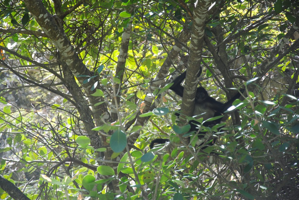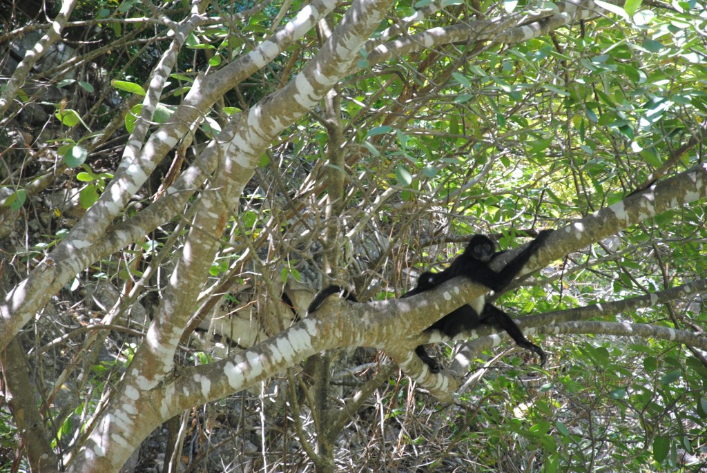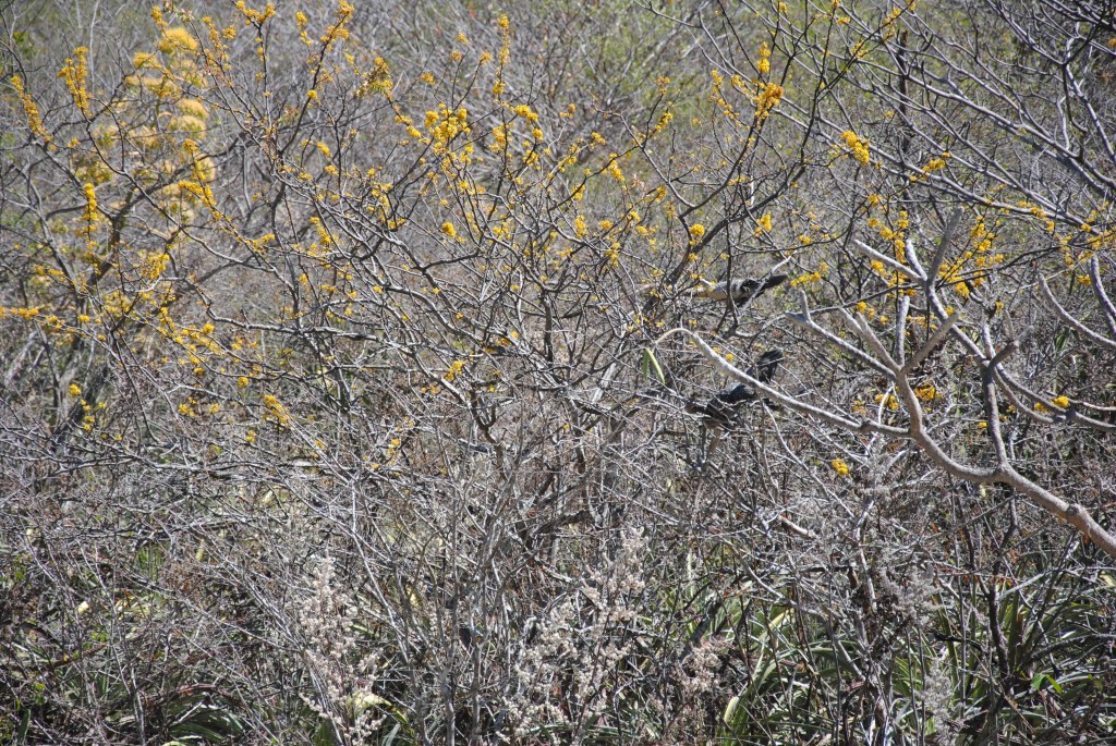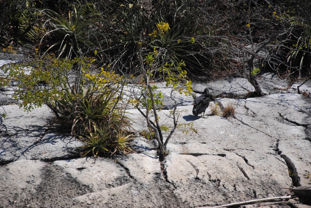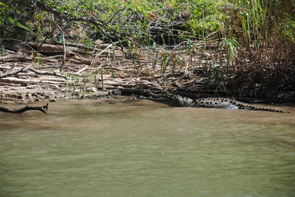 Notre attention se porte donc sur les nombreux hérons, et surtout sur les crocodiles qui paressent sur les berges, la gueule ouverte pour réguler leur température. Des iguanes noirs les imitent, dormant sur les branches basses d’arbres courts et nus.
