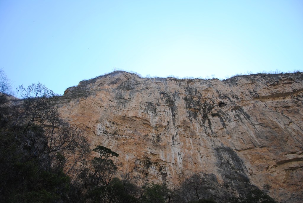 Quelques agaves parviennent miraculeusement à pousser sur ces flancs rocheux, nourries par les eaux qui infiltrent la roche. Celle-ci donne d’ailleurs lieu à des formations fort étranges, comme cet étonnant « arbre de noel » collé à la paroi, ou ces grottes roses et blanches creusées dans la pierre.