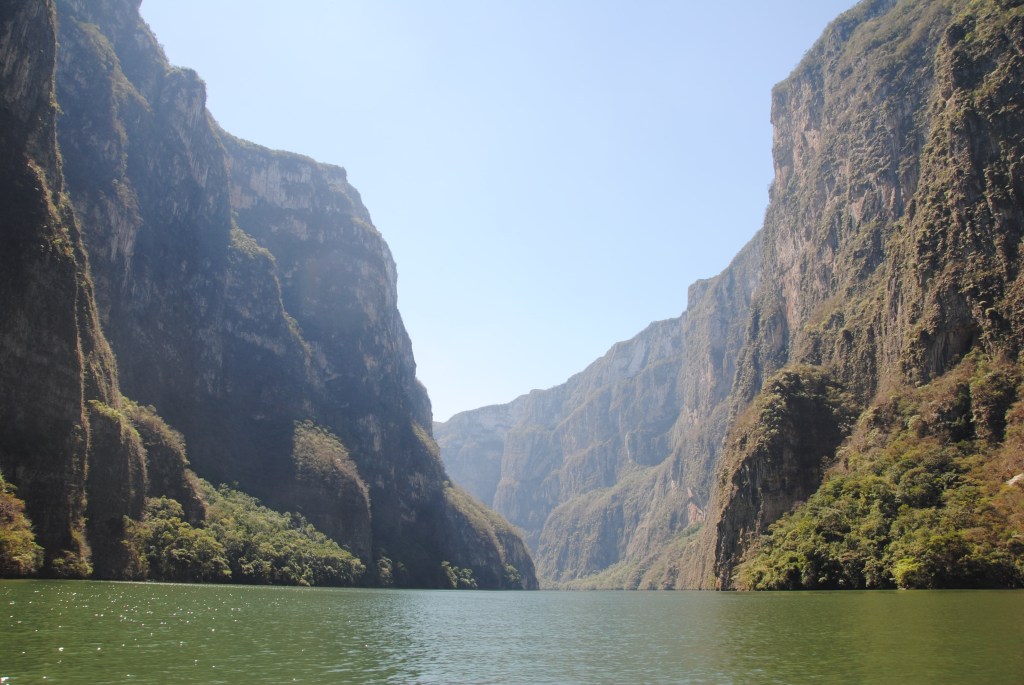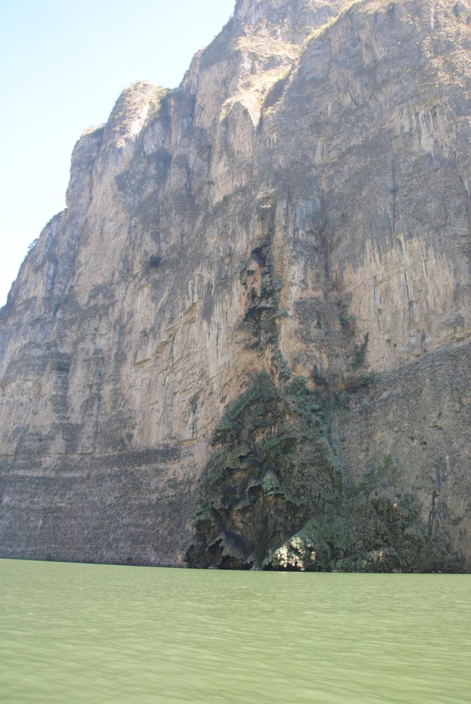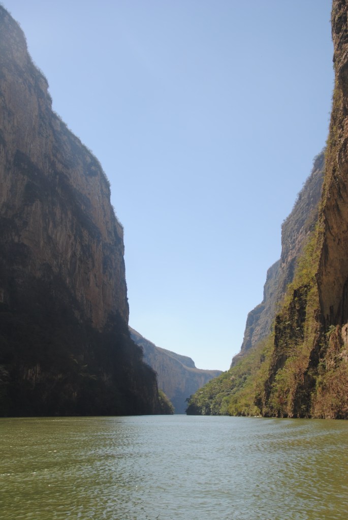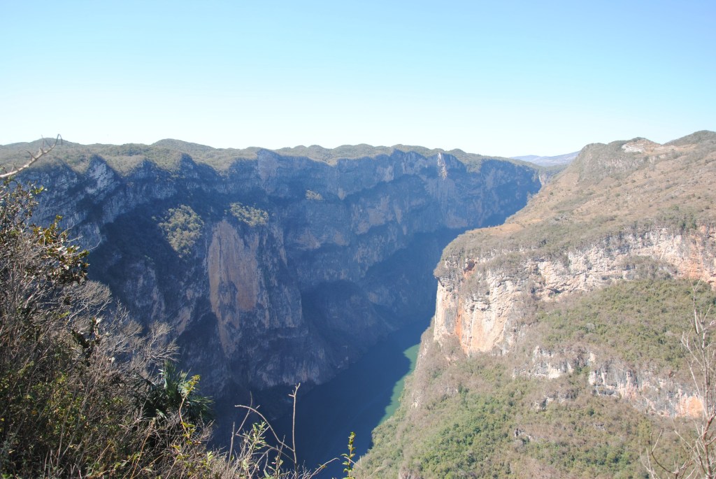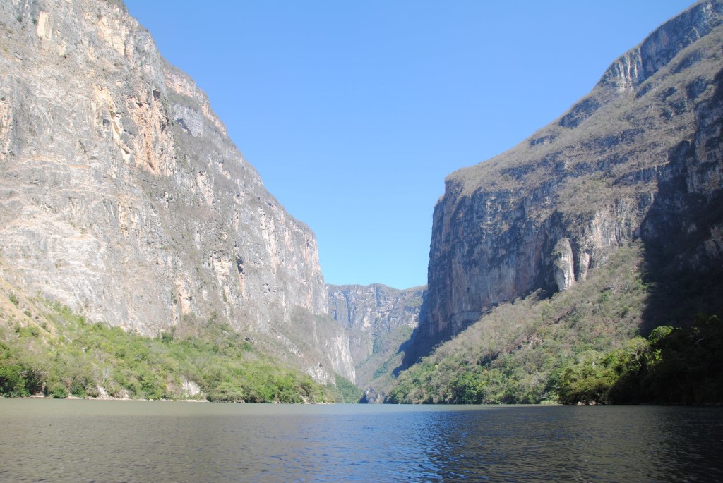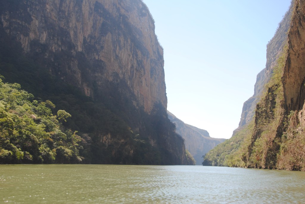 Puis les falaises se hissent de part et d’autre du fleuve, et au détour d’une méandre, nous découvrons le Sumidero, abasourdis par l’imposante beauté du paysage. Le canyon est majestueux, ses parois abruptes atteignant à divers endroits les 1000 mètres de haut !