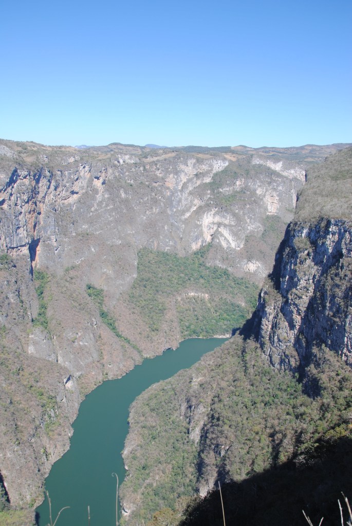 La balade se termine sur un immense lac, formé par un barrage retenant les eaux du Rio Grijalva. La vue dégagée offre un panorama superbe sur les alentours.