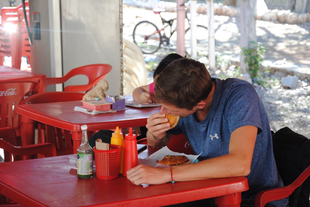 Revigoré par ce choix, et par une douche chaude, je retrouve David et nous dégotons un petit restaurant mexicain non loin du Zocalo. L’attente, comme souvent, est longue, l’occasion pour David de raconter ses périples à vélo entre Moscou et Athènes, puis sur les routes de Chine. Quelles aventures ! Notre patience est récompensée par des plats délicieux servis avec le sourire. Repus, nous nous baladons un moment dans les rues très animées de la ville. En ce soir de Saint Valentin, des couples de tous âges déambulent joyeusement, en se tenant par la main. Je m’offre un délicieux Paris-Brest chez Oh-la-la, boulangerie française et véritable institution à San Cristobal.
