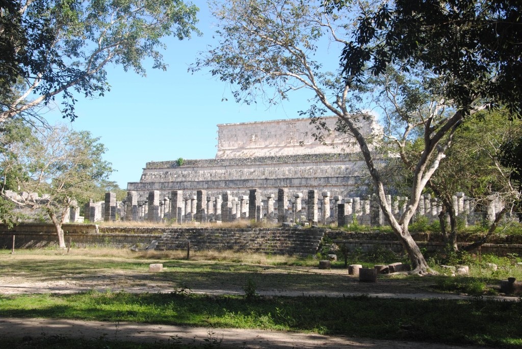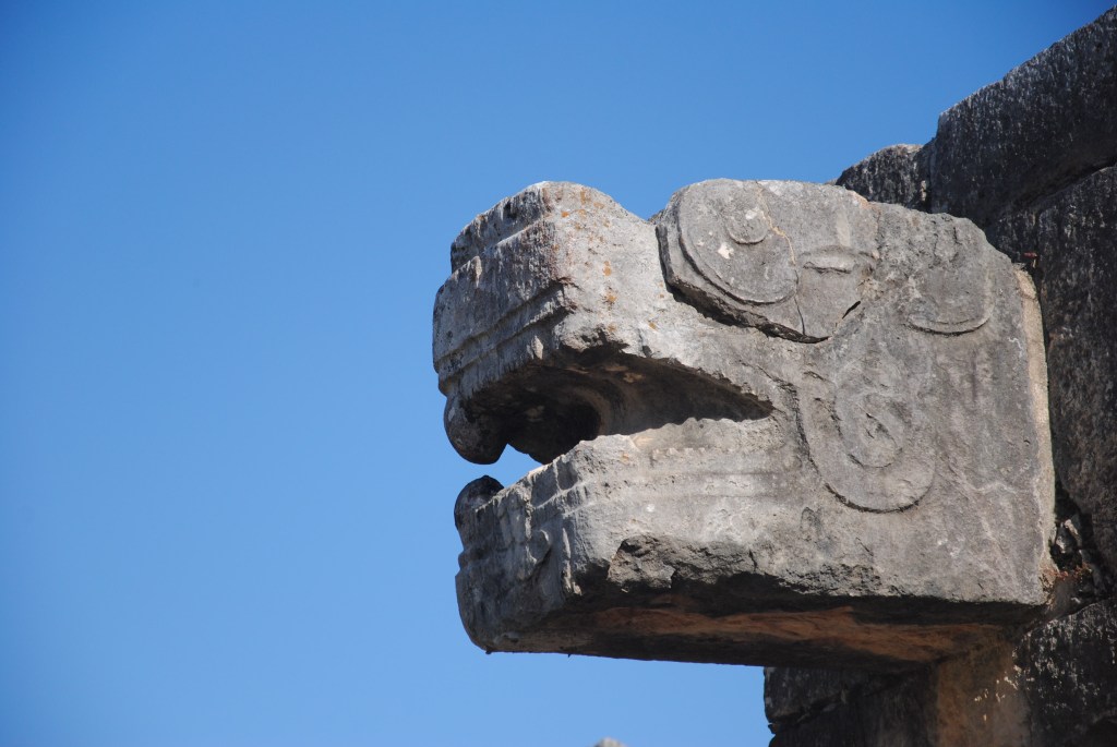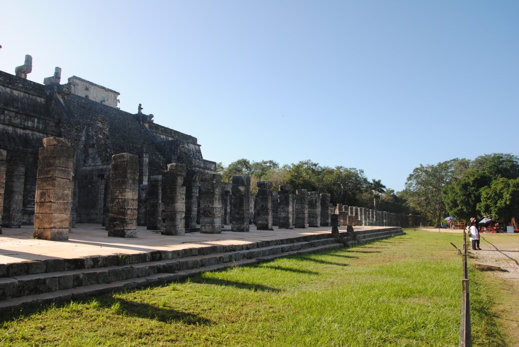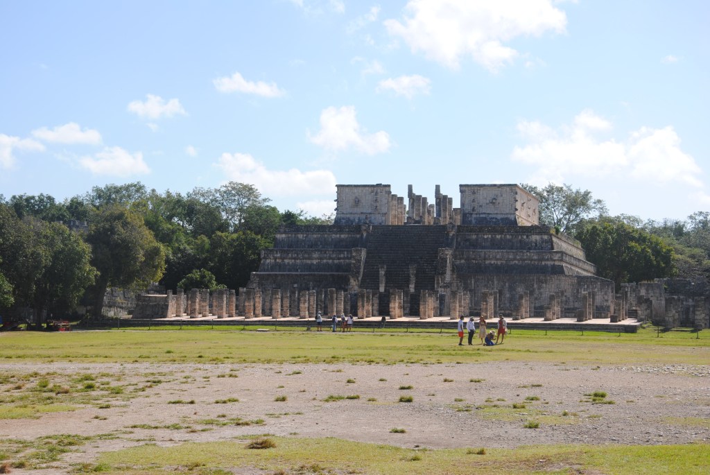 Après cette parenthèse ornithologique, je retourne sur la plaza pour observer le jeu de balle de Chichen Itza, le plus imposant du monde Maya. Le terrain de jeu est impressionnant, au moins quatre fois plus vaste qu’à Uxmal. Les touristes sont arrivés, et comme souvent certains groupent très bruyants profanent cet endroit sacré. Notamment par des incessantes sessions de « clapping ». Ils tapent dans leurs mains comme des demeurés, à s’en faire sauter les tympans (et les nôtres), pour tester l’écho de l’endroit. Mais je ne peux pas me plaindre, nous nous sommes partagés, avec quelques privilégiés, la cité mythique pendant près d’une heure et demi avant l’arrivée de la foule ! Je regagne donc la sortie avec le sourire, heureux de ma visite.