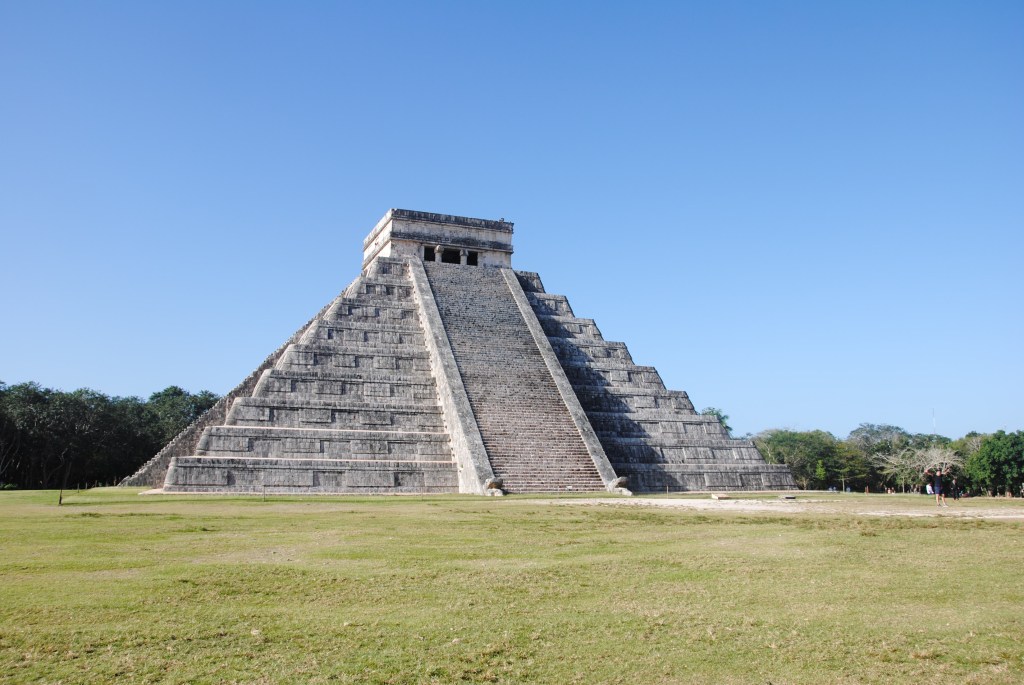 Mardi matin, Pisté. J’avale en vitesse le café si gentiment servi par l’adorable patronne de la Casa de las Lunes, et file vers le site de Chichen Itza, à deux kilomètres de là. C’est que je veux être le premier à fouler ce lieu mythique, devenu il y a peu l’une des « nouvelles » sept merveilles du monde. Loupé. À mon arrivée au guichet, à 7h45, quatre personnes attendent déjà l’ouverture, prévue à 8h. C’est néanmoins sur un site désert, et sous un ciel superbe, que je découvre la majestueuse pyramide qui trône au milieu de la Plaza. Sa symétrie parfaite, l’harmonie de ses lignes, avec ses angles arrondis, en font probablement la plus belle que j’ai vu.