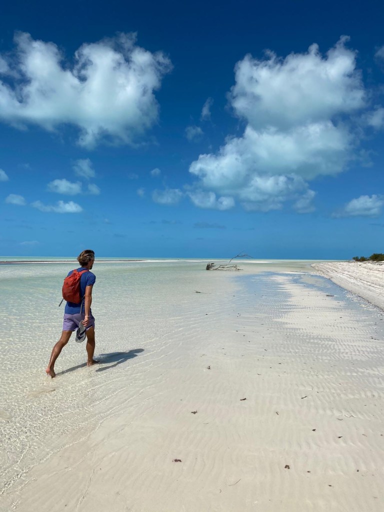 Je marche ensuite un long moment sur la plage jusqu’au paradis perdu de Punta Mosquito, mon endroit préféré de l’île. Là, j’alterne baignade, sieste, et écriture, au milieu des pélicans qui prennent le soleil sur un banc isolé. Les couleurs sont une nouvelle fois époustouflantes.