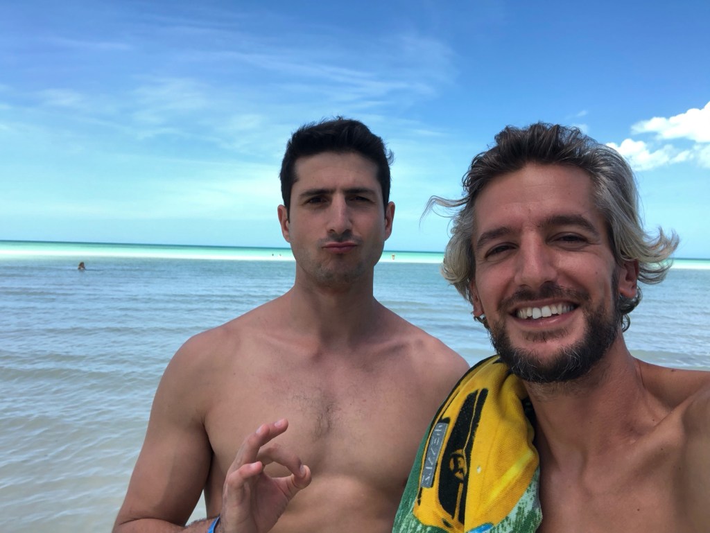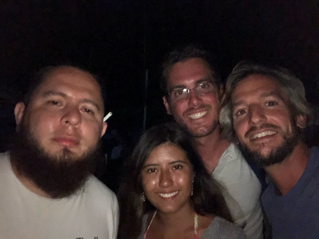De retour en ville, nous suivons le son des enceintes crachant le sempiternel reggeaton pour trouver les orthocentres festifs de l’île. En chemin, Allan, mexicain au visage pâle et à la barbe talibanesque, nous interpelle du volant de son « golf kart ». Passablement éméché, et visiblement très seul, il insiste pour nous conduire à destination. Nous évaluons les risques (la vitesse maximum de ces bolides est de 5 km/h), et les bénéfices (atténuer un peu la solitude du jeune homme, contre un petit moment amusant de notre soirée), et prenons finalement place dans la voiturette. Quelques tours de Zocalo plus tard, Allan gare le kart sur la plage, où la fête bat son plein. Dans un espagnol ourlé de boisson, le jeune homme nous apprend qu’il est champion de VTT de descente, plus précisément « numero trés en el mundo ». Difficile à croire au vu du gabarit du gaillard, mais nous lui accordons le bénéfice du doute.