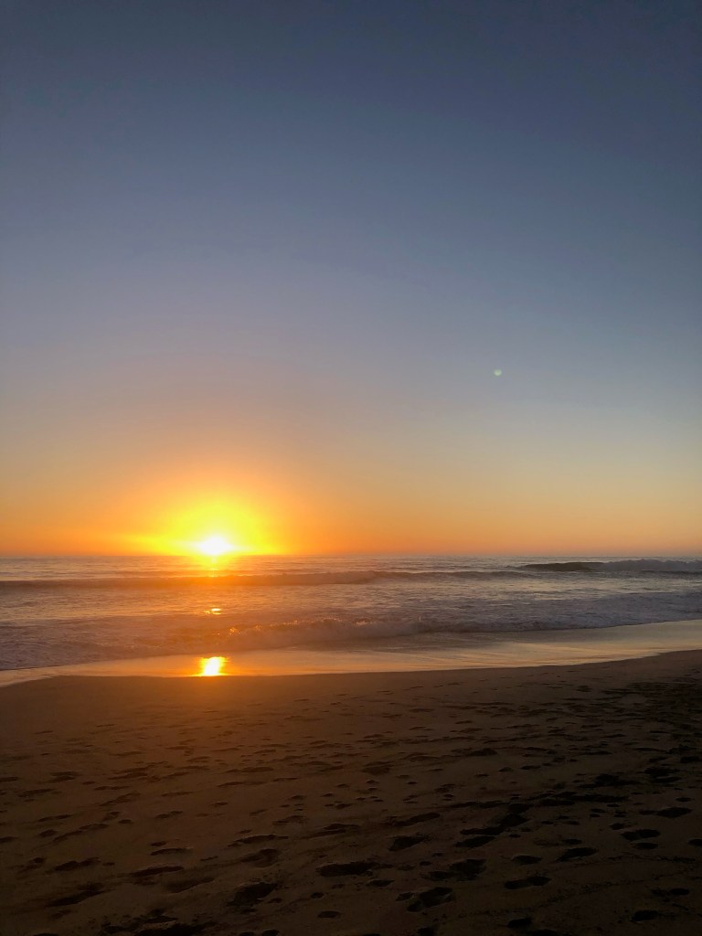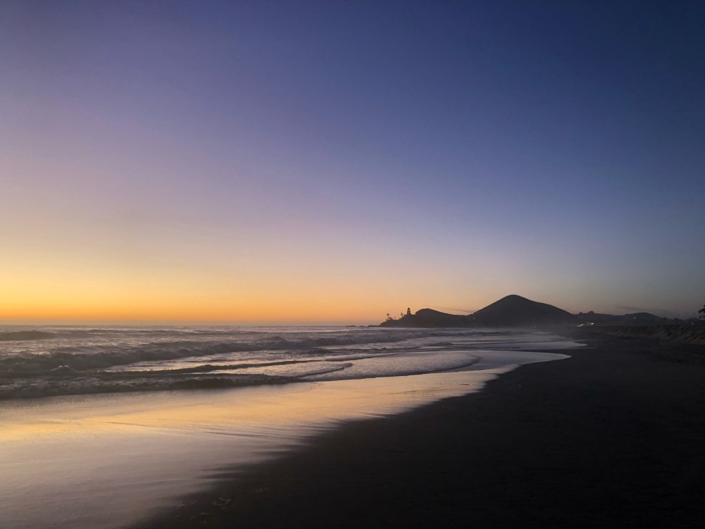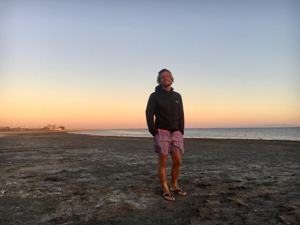 L’appel de la vague a raison d’Aurélien, et, malgré l’heure tardive, nous filons à la Playa Cerritos, à une quinzaine de minutes de voiture plus au sud. Là, Aurélien loue une planche et saute dans les vagues, alors que Julie et moi longeons la longue et sauvage baie, à pied. Après un superbe coucher du soleil, nous rejoignions le surfer de la bande.