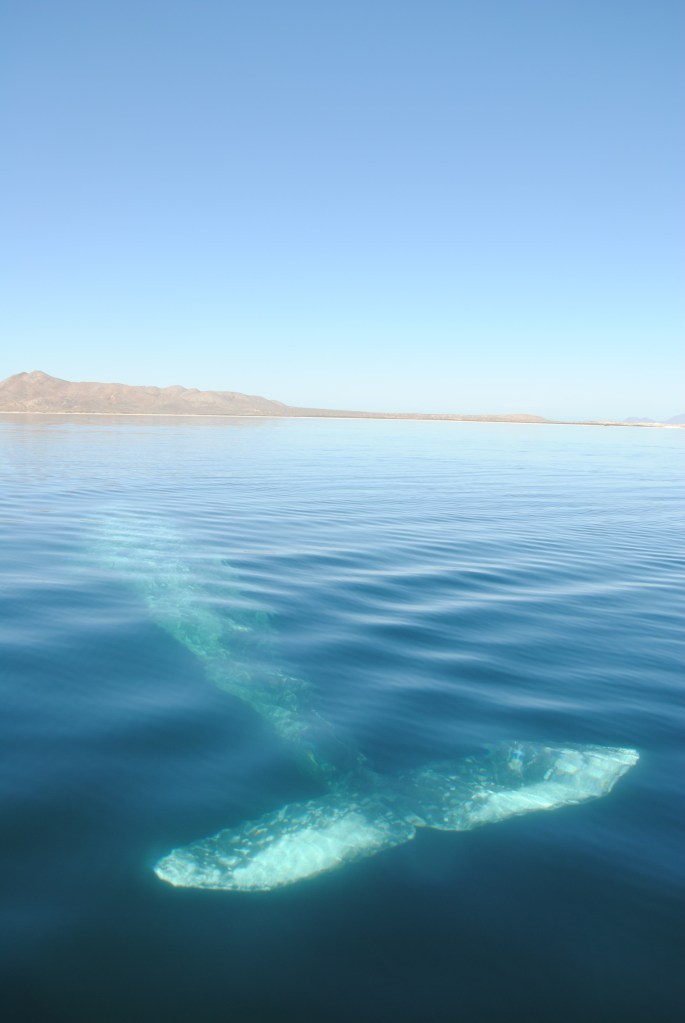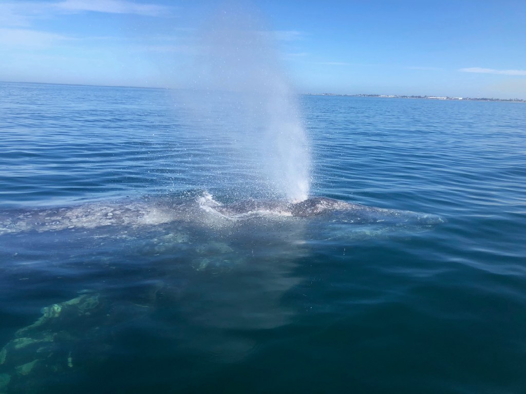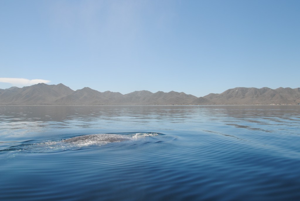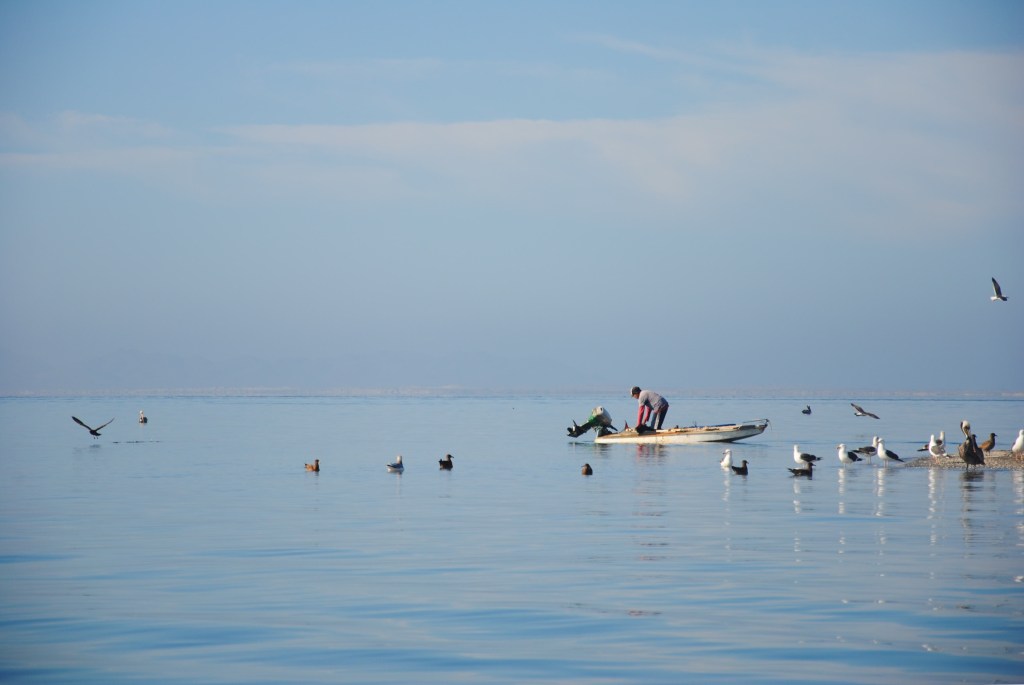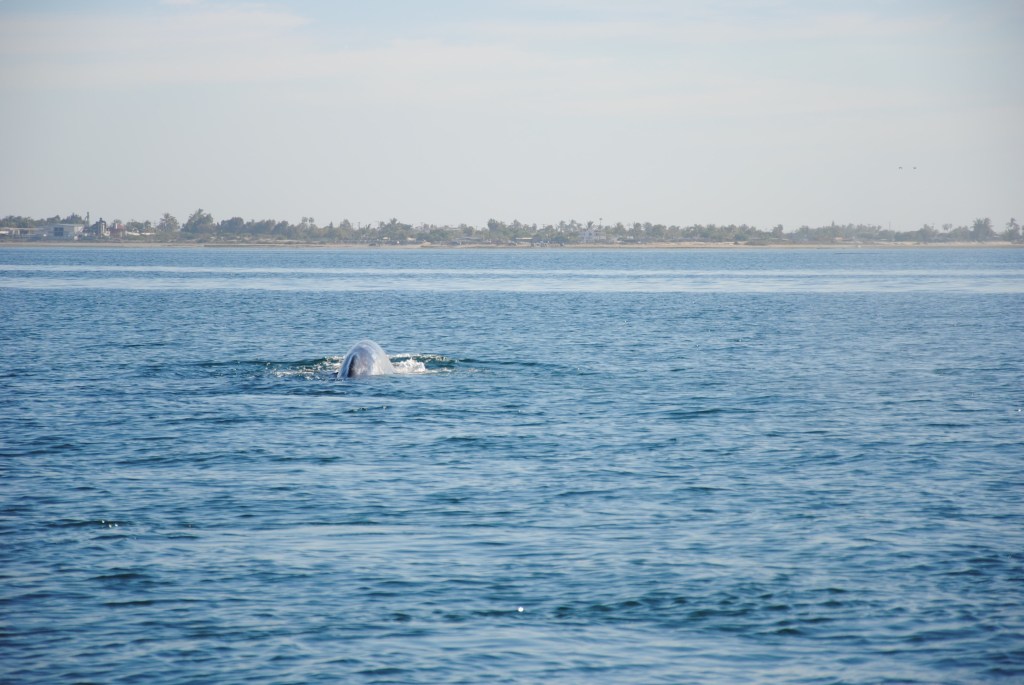 Samedi matin, Puerto San Carlos. Après le sergent Miguel, c’est le capitaine Miguel qui nous accueille sur sa lancha, pour nous mener dans la Bahía Magdalena à la recherche des baleines grises. La brume s’est levée, et les couleurs matinales sont superbes. Sur une mer laiteuse, les pêcheurs partent à la crevette au milieu de mouettes et cormorans opportunistes.