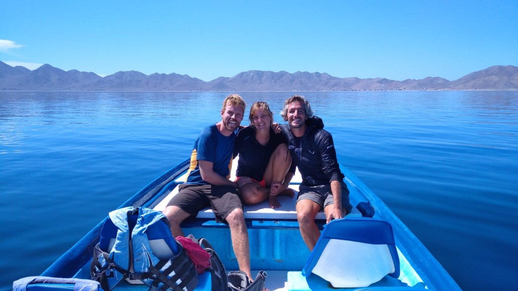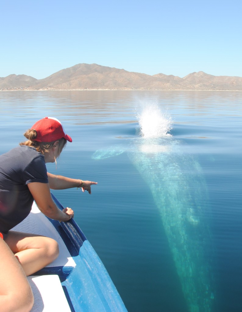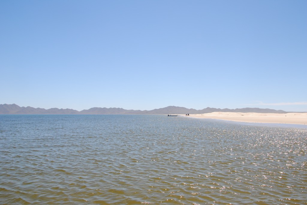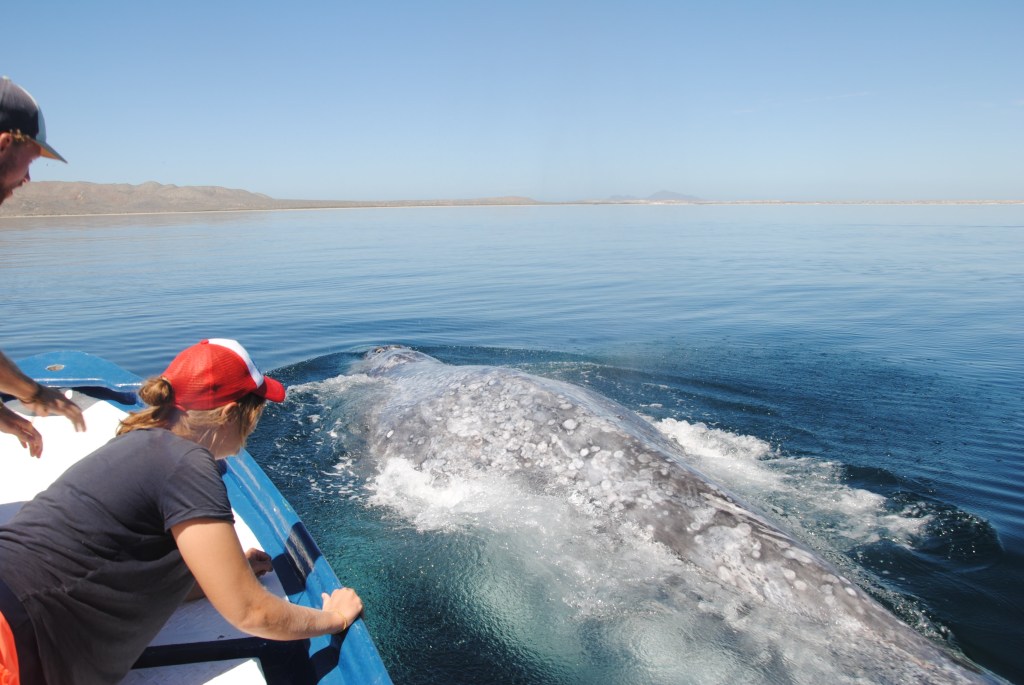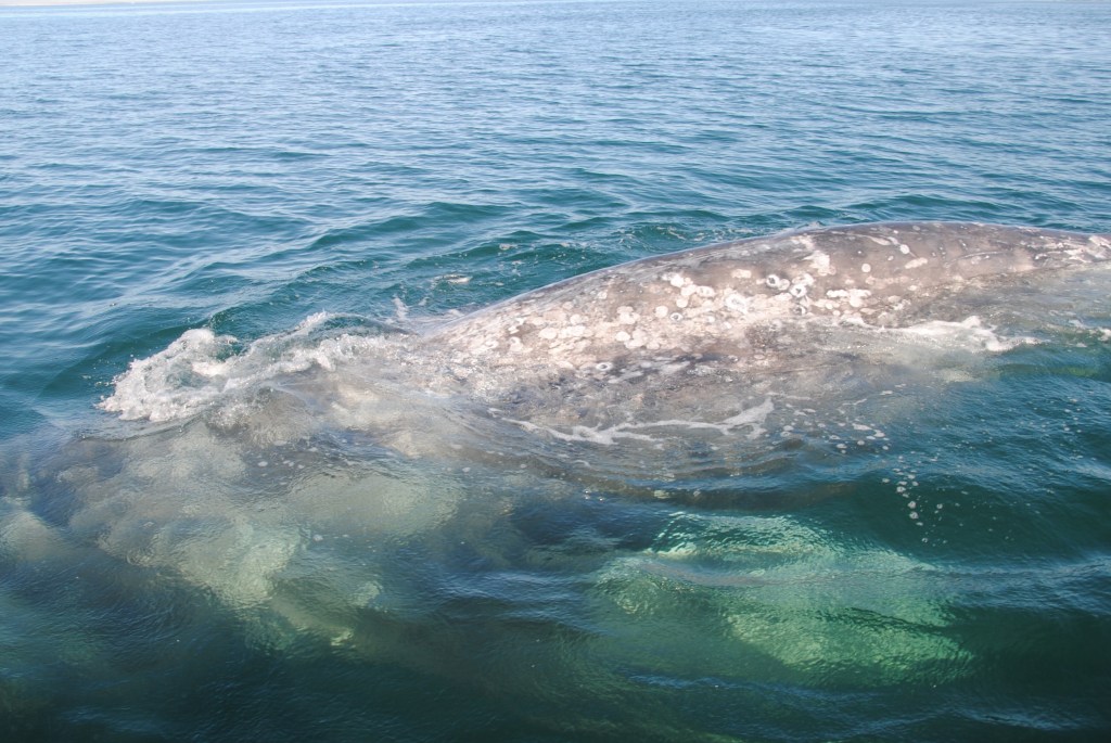Samedi matin, Puerto San Carlos. Après le sergent Miguel, c’est le capitaine Miguel qui nous accueille sur sa lancha, pour nous mener dans la Bahía Magdalena à la recherche des baleines grises. La brume s’est levée, et les couleurs matinales sont superbes. Sur une mer laiteuse, les pêcheurs partent à la crevette au milieu de mouettes et cormorans opportunistes.