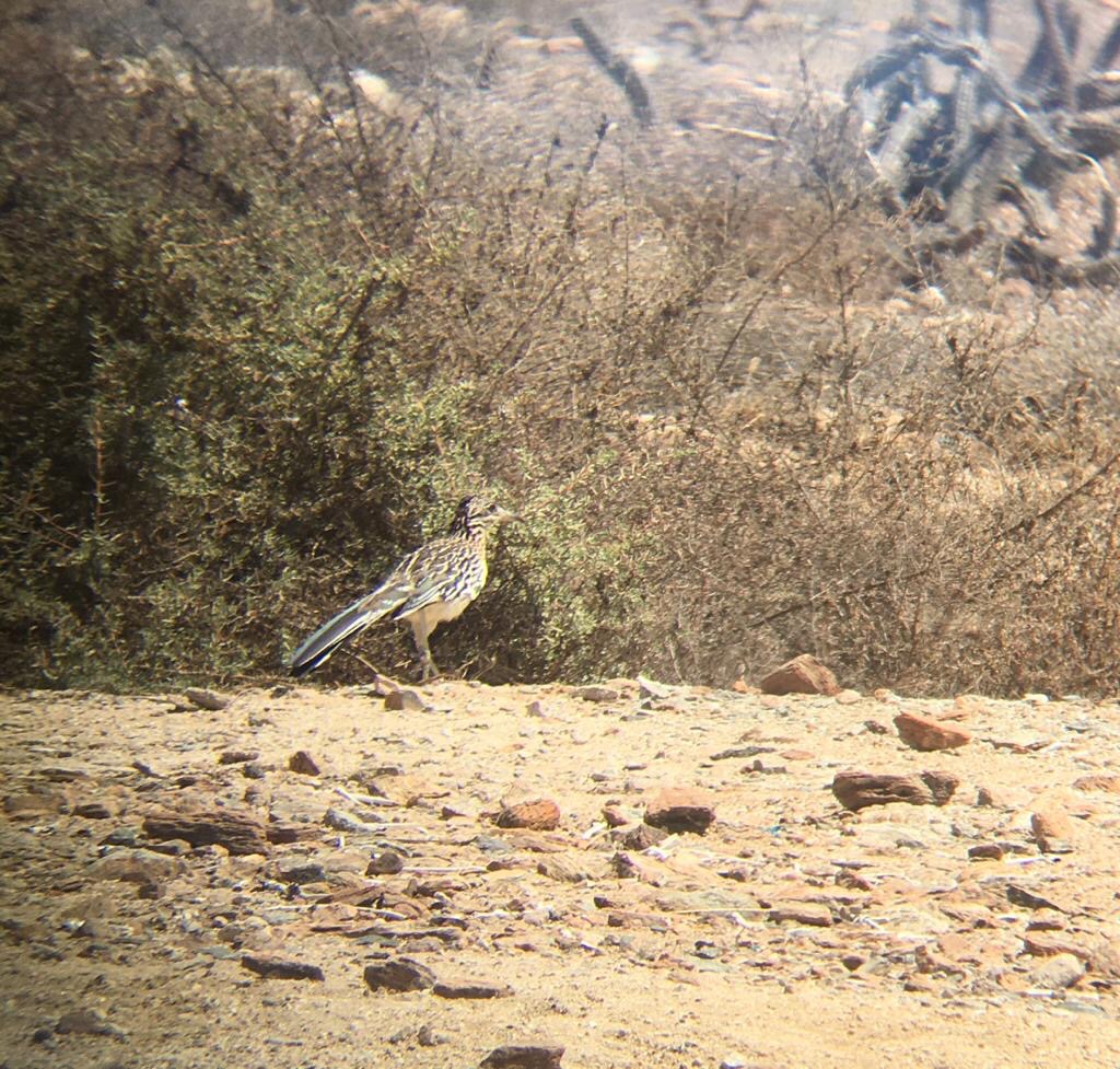 Sur le chemin du retour, avant de retrouver la route de sable qui mène au village, Aurélien de ses yeux bioniques repère une baleine tout près du rivage, que nous observons à la jumelle. Un « greater roadrunner » erre dans des ruines poussiéreuses, complétant le bestiaire de la journée. Ce drôle d’oiseau n’est rien d’autre que le Bip-Bip poursuivi par Coyote dans les cartoons de la Warner !