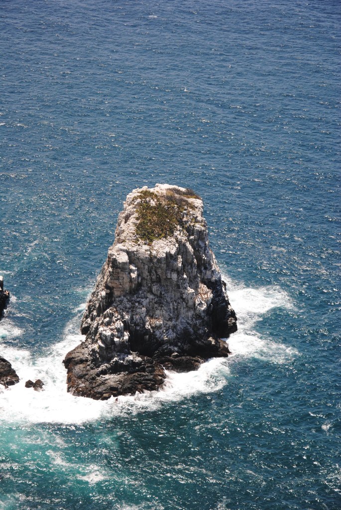 Nous cheminons ensuite jusqu’au petit col où la croisée des chemins offre plusieurs itinéraires. Nous optons pour celui qui grimpe au sommet du « Cerro » qui domine la pointe, car je souhaite faire découvrir à mes compères le fabuleux panorama admiré hier. Debout sur le monticule qui marque la fin du sentier, nous profitons d’une vue superbe à 360 degrés, retraçant au passage nos itinéraires des derniers jours. Nous faisons ensuite le tour du plateau escarpé qui tapisse la montagne, en regardant les vagues casser sur de petits îlots abruptes. Le paysage rappelle l’archipel inhospitalier où Rey retrouve Luke Skywalker dans l’épisode VIII de Star Wars.