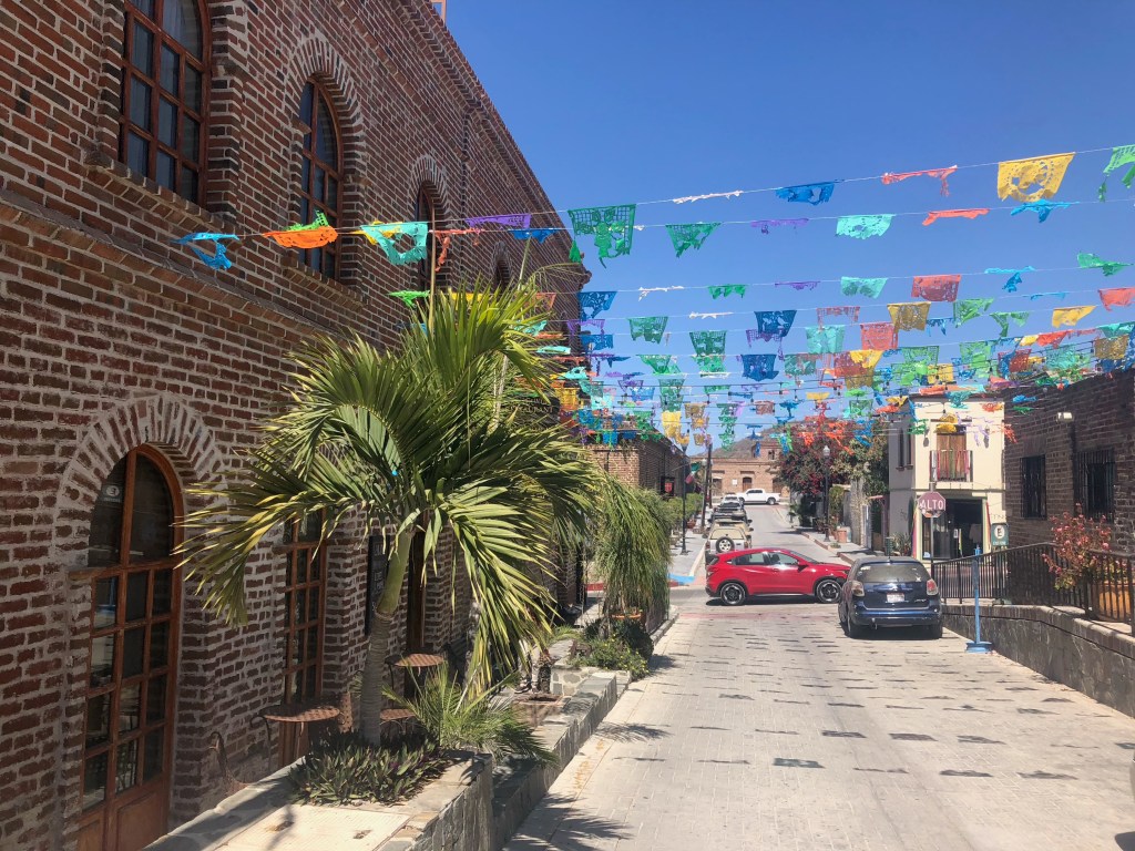 Avant de rentrer à l’hostel, nous faisons une halte au village de Todos Santos. Nous découvrons un charmant « pueblo », aux jolis bâtiments de briques, dont les petites places offrent une belle vue sur la palmeraie. Flotte néanmoins dans l’air un parfum légèrement artificiel, une atmosphère un peu trop « américanisée ». Néanmoins la promenade est agréable, et les badauds sympathiques.