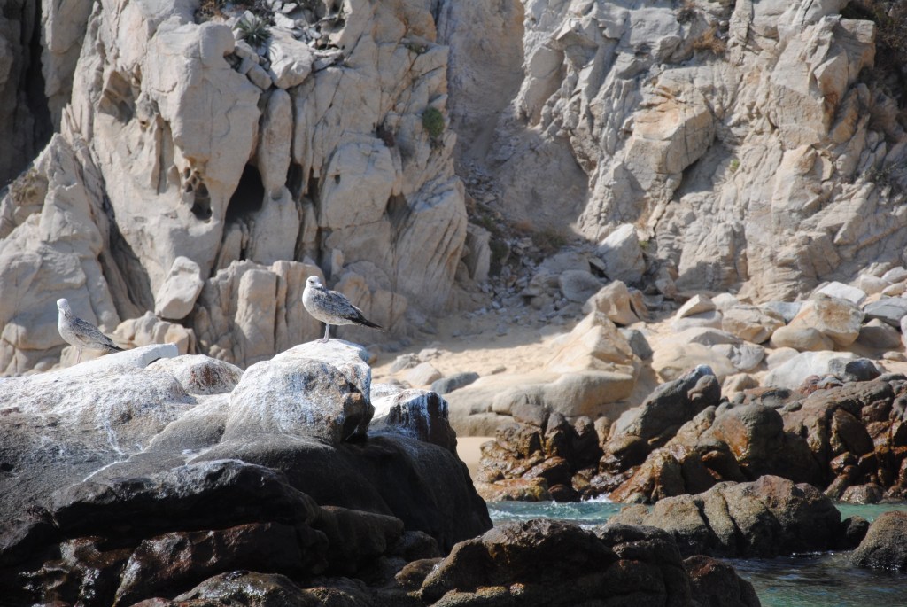 Les plages de la pointe sont superbes, sauvages. Côté pacifique, le rivage de la plage du divorce est frappé par des vagues hautes et régulières. A l’est de la playa, le sable se fraye un étroit passage entre les roches pour rejoindre la Mer de Cortés, et former la plage de l’Amour, miroir antagoniste, plus doux et plus intimiste que la plage de l’autre côté de l’arche. C’est non loin d’ici, sur la plage des pélicans, que nous accostons pour la session snorkeling.