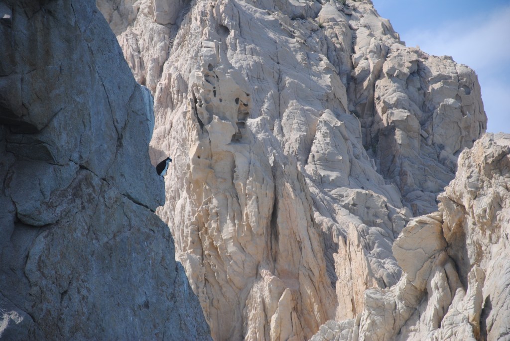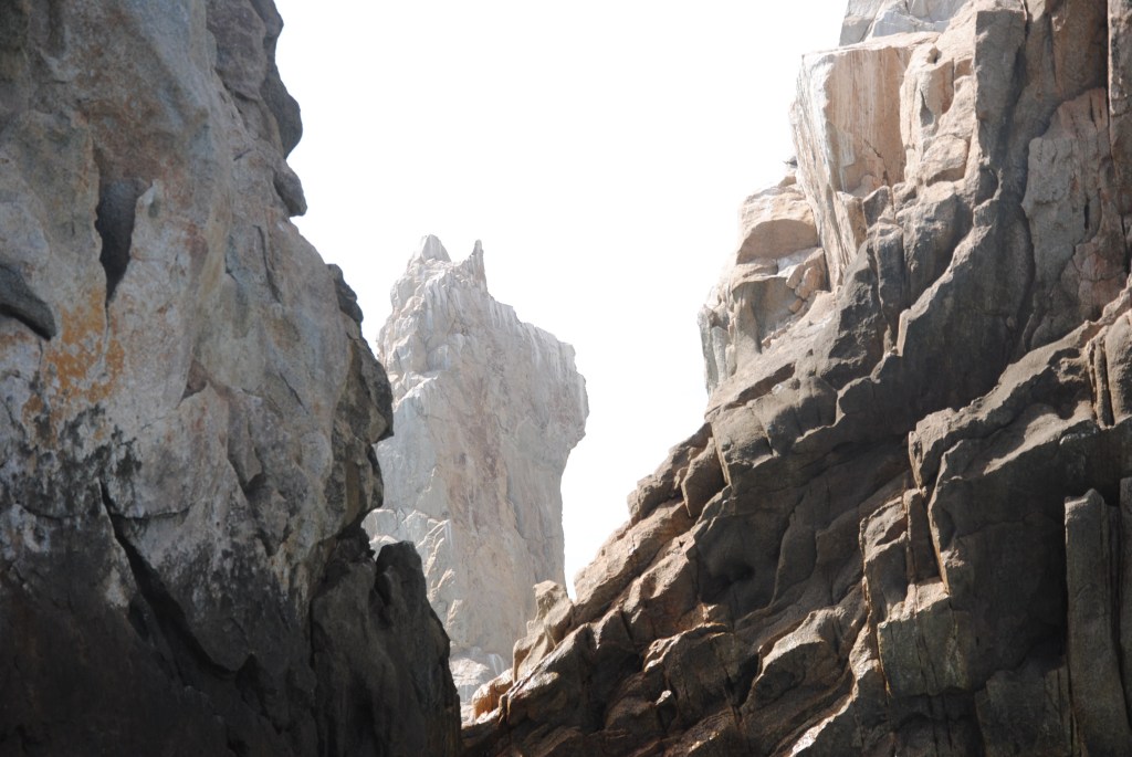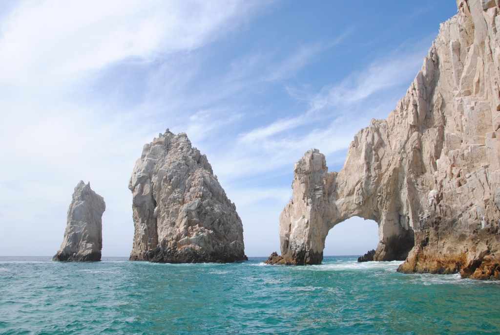 Cap vers la Finistera et ses magnifiques formations rocheuses. La pierre blanche et friable qui compose la pointe semble avoir été sculptée par un artiste titanesque. L’arche qui marque la séparation entre Océan Pacifique et Mer de Cortés rappelle les falaises d’Etretat. Un rocher haut et étroit au large du pont de pierre ressemble lui à un chien racé, les oreilles dressées vers le ciel.