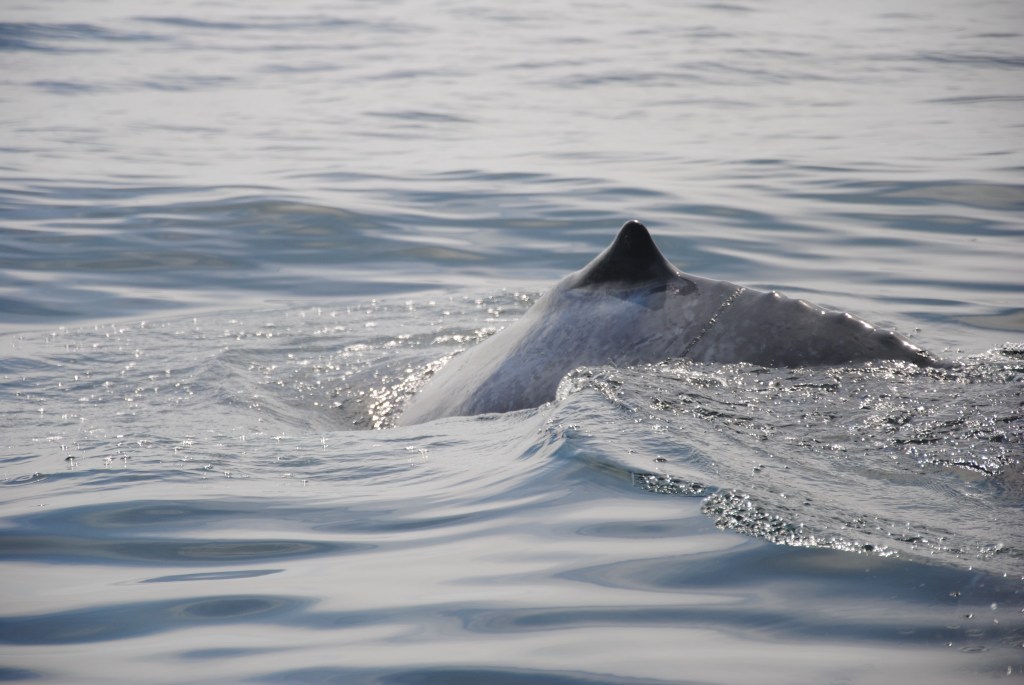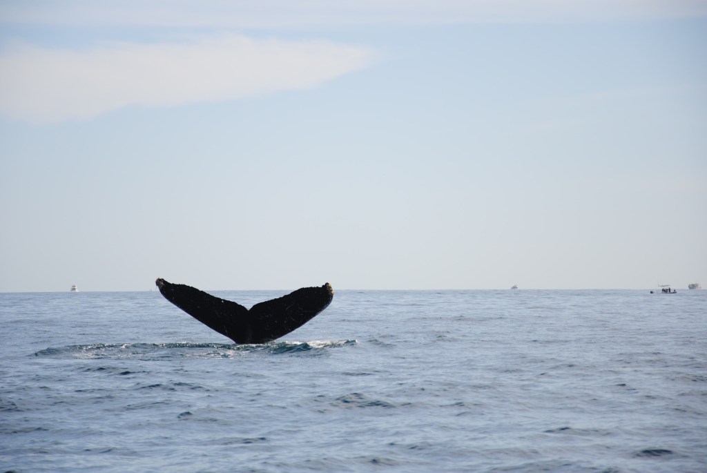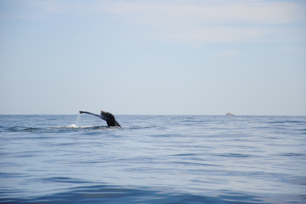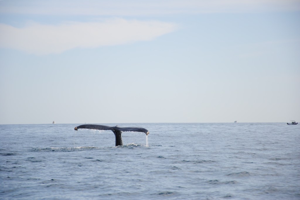La matrone est énorme, elle dépasse les quinze mètres, et dans son sillon, le « petit » géant tente de suivre la cadence. Lorsqu’elles sondent, les créatures marines nous laissent admirer leurs sublimes queues couleur bleu nuit, avant de disparaître dans les profondeurs.