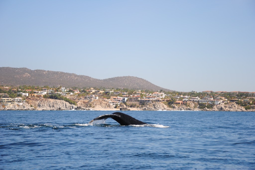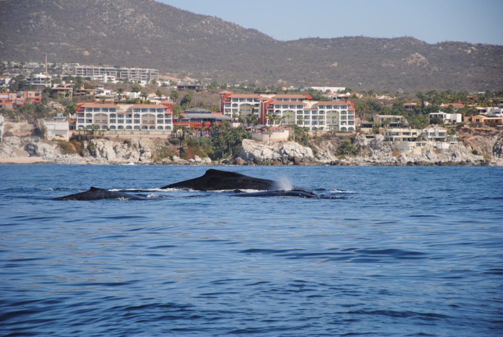 Une petite heure de route nous sépare de notre prochaine ville étape : Cabo San Luca, à la pointe méridionale de la péninsule. Que d’urbanisation ! Après San Carlos et Todos Santos, la ville nous paraît tentaculaire…Située entre l’Océan Pacifique et la Mer de Cortés, la cité balnéaire est une destination prisée des américains, et une alternative de poids à Cancun pour les « springbreakers » et leurs débauches festives. À priori pas de quoi séduire des voyageurs avides de calme et de nature…Néanmoins, la Finistera, le cap séparant les deux mers, avec ses somptueuses formations rocheuses, vaut le détour. Et puis des baleines à bosses viennent mettre bas dans ces eaux…Nous posons ainsi nos valises à l’hôtel Santa Fe, et grâce à un personnel efficace et sympathique, nous organisons en un tournemain une excursion sur mesure pour le lendemain, à la découverte de la Finistera et des cétacés magiques.
