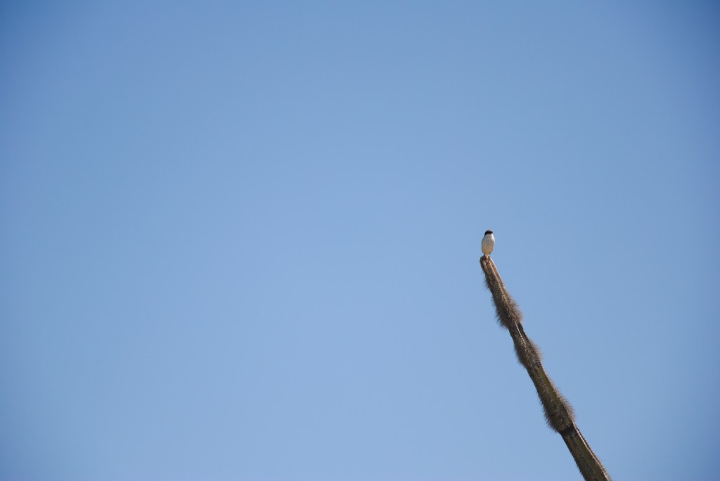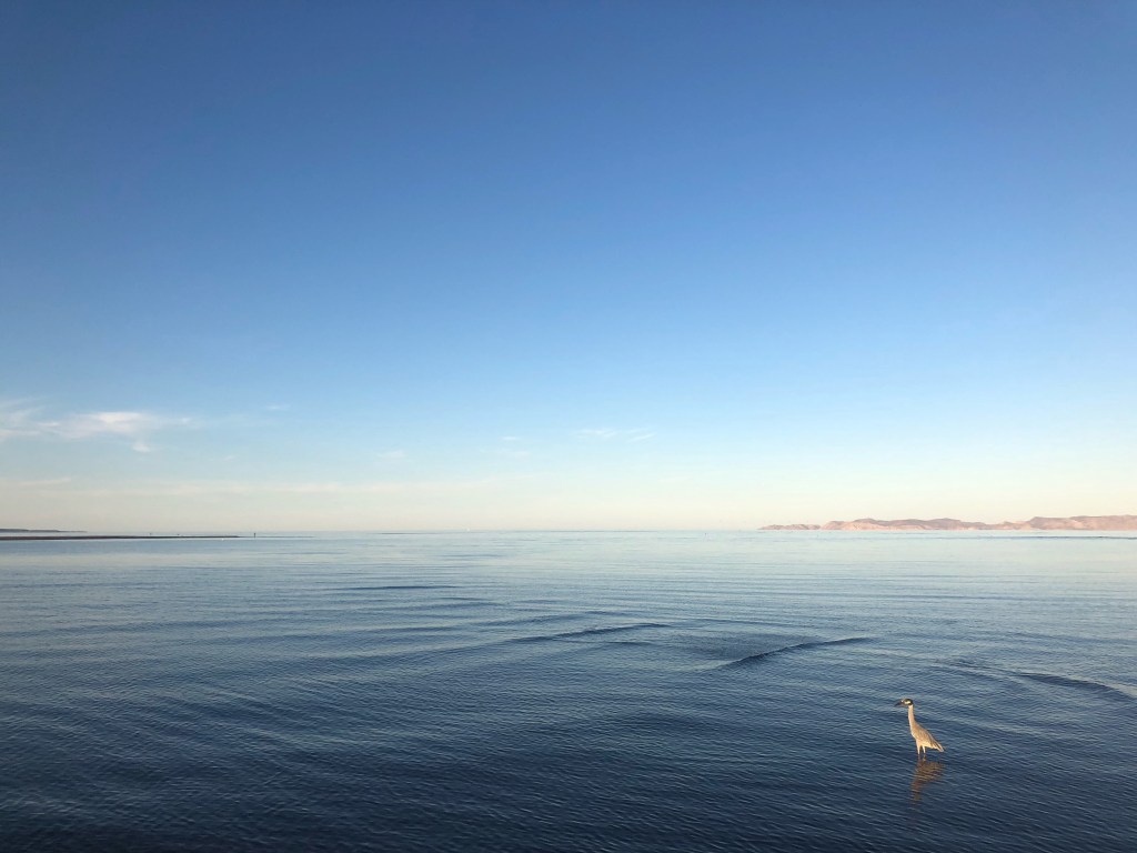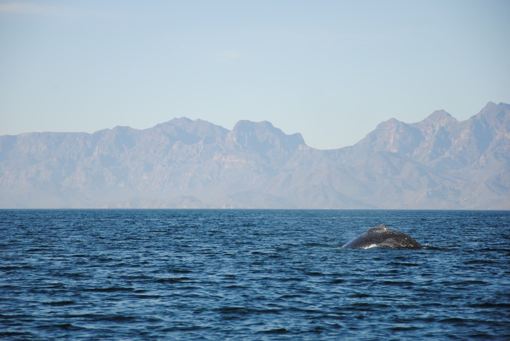 La journée commence ainsi sous les meilleures hospices, et l’humeur est excellente au moment d’embarquer dans la lancha d’Antonio. Pas de promesses, mais dans la baie classée parc maritime national, nous pourrions rencontrer quelques unes de ces créatures merveilleuses pour lesquelles la baja est un sanctuaire. Rompus à l’exercice, nous scrutons l’horizon à la recherche d’un jet, d’un aileron, d’une moustache. La saison des baleines est sur le point de se terminer, nous sommes donc extrêmement chanceux d’en apercevoir un spécimen après seulement quelques minutes de navigation ! Une petite baleine à bosse termine son repas, prenant quelques inspirations avant de sonder plus au fond. C’est probablement l’une des dernières à profiter du calme de la baie avant de contourner la péninsule et de nager jusqu’à l’Alaska.