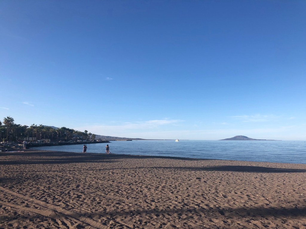 Je m’engage sur le Malecón pour un footing matinal, dans un village encore assoupi. Trottinant sur la plage, vers le Nord du pueblo, la brume est si épaisse que je ne distingue pas l’isla Coronado, pourtant si proche…La température est idéale pour la course, et je rejoins l’hôtel après une balade agréable. Le service du petit déjeuner est d’une telle lenteur que nous avons le temps de voir le brouillard se dissiper, et les îles réapparaître sous un ciel désormais bleu. Le bus pour Mulegé ne part qu’à 15h, nous avons donc le temps de profiter une dernière fois de la baie, en kayak et paddle, pour une session contemplative et sportive.