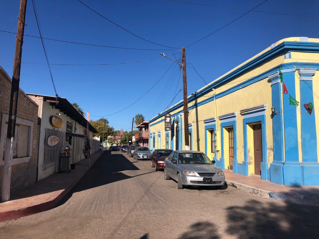 Le village de Mulegé est situé à la sortie de la baie, au cœur d’une petite oasis. Une belle rivière court le long du pueblo, jusqu’à l’estuaire, à trois kilomètres à l’est. Rues colorées, petites placettes charmantes, quelques maisons à l’architecture coloniale, Mulegé dégage un agréable parfum d’authenticité. L’hôtel Hacienda, avec ses murs jaunes et bleus, son grand patio, et sa petite piscine, s’intègre bien dans le paysage, et l’on s’y sent bien, très vite. Nous prenons quelques informations auprès de la charmante tenancière, puis sortons explorer le village, en quête d’un restaurant.