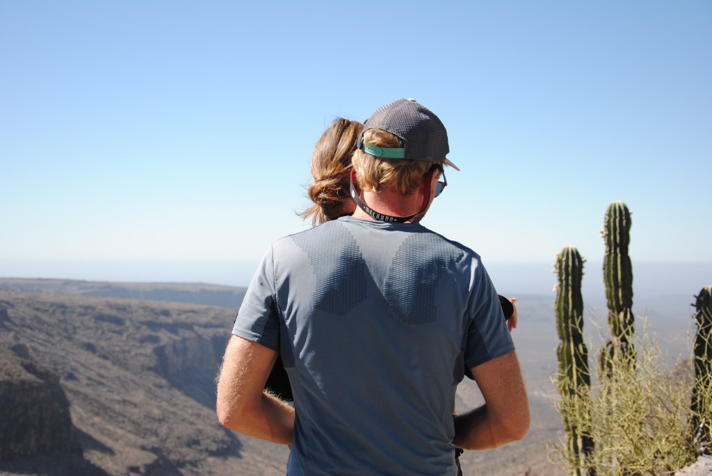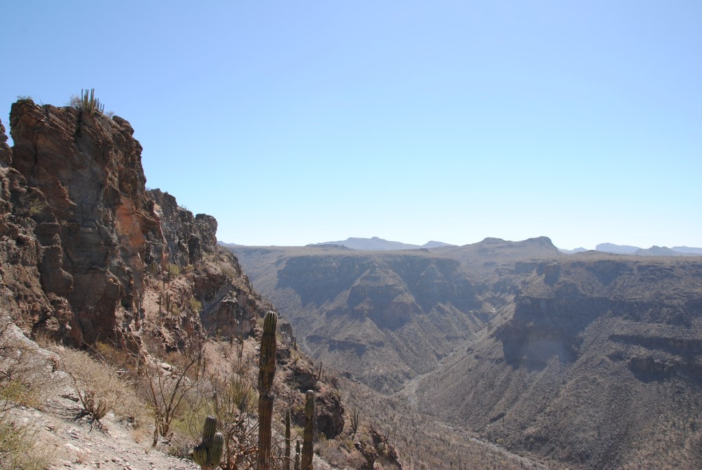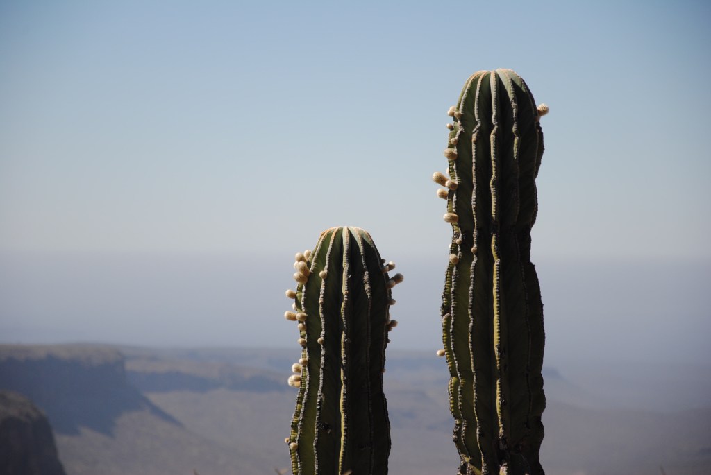 La route continue son ascension, longeant le canyon de San Francisco. Un second stop nous permet de l’admirer, posés sur son bord. Le spectacle est saisissant. Ce que je vois m’évoque tout ce qui a nourri mon imaginaire du grand Ouest américain, des albums de Lucky Luke et des Tuniques Bleues aux westerns de Sergio Leone. Tout est là : les flancs du canyon et leurs énigmatiques formes, travaillées par des eaux dont la présence est insoupçonnable, les « cardons », ces hauts cactus si caractéristiques, et même les vautours, qui profitent des courants ascendants, et espèrent ardemment que la beauté aride de l’endroit nous étourdisse, précipitant notre chute au fond du canyon. L’écho, infini, sollicité par la voix puissante d’Efrain, offre une bande sonore parfaite à notre film d’aventure.
