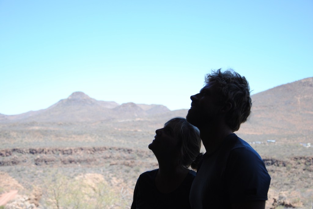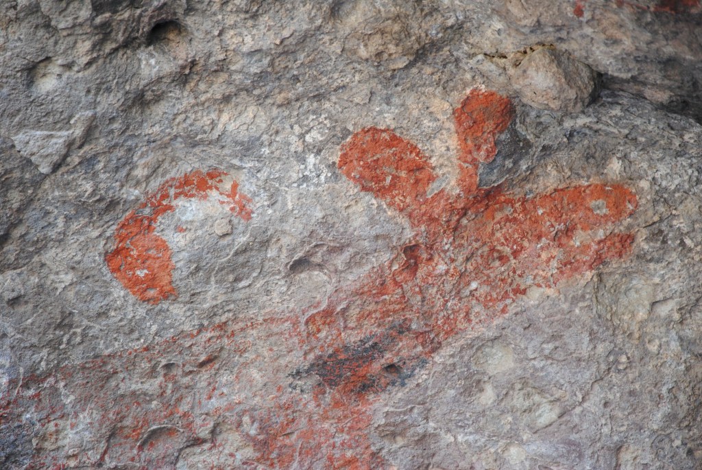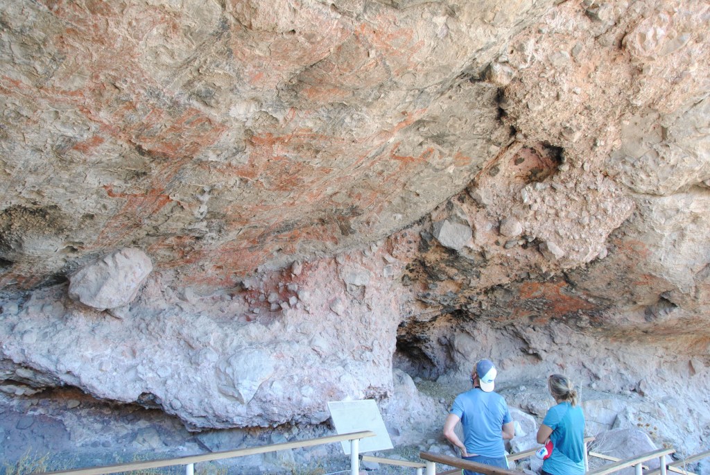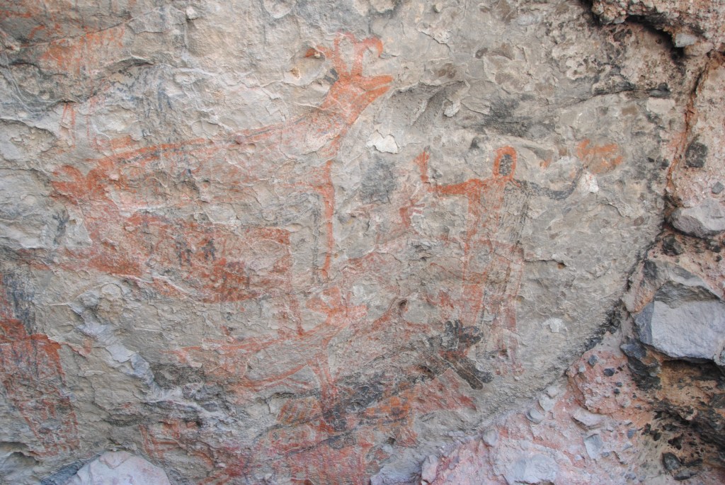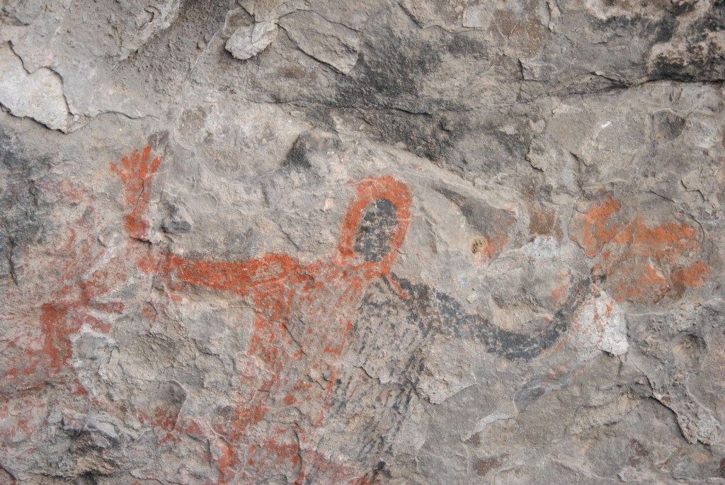 Nous parvenons, à 1300m d’altitude, à la Cueva del Raton, la « grotte de la souris », et ses peintures rupestres vieilles de plus de 7000 ans. Je m’étonne, et m’émeus de la similarité des dessins avec ceux du canyon de la Trinidad, pourtant séparés par quelques millénaires. Les mêmes figures, les mêmes traits enfantins…Ce qui laisse supposer de l’immense importance de la transmission pour ces peuples ancestraux. Le sanctuaire où nous nous trouvons en est d’ailleurs sans doute une preuve tangible…Le personnage le plus emblématique de la grotte est un chaman bicolore, mystique, dont la tête, noire et sans visage, est peut-être un passage vers les mondes engloutis.