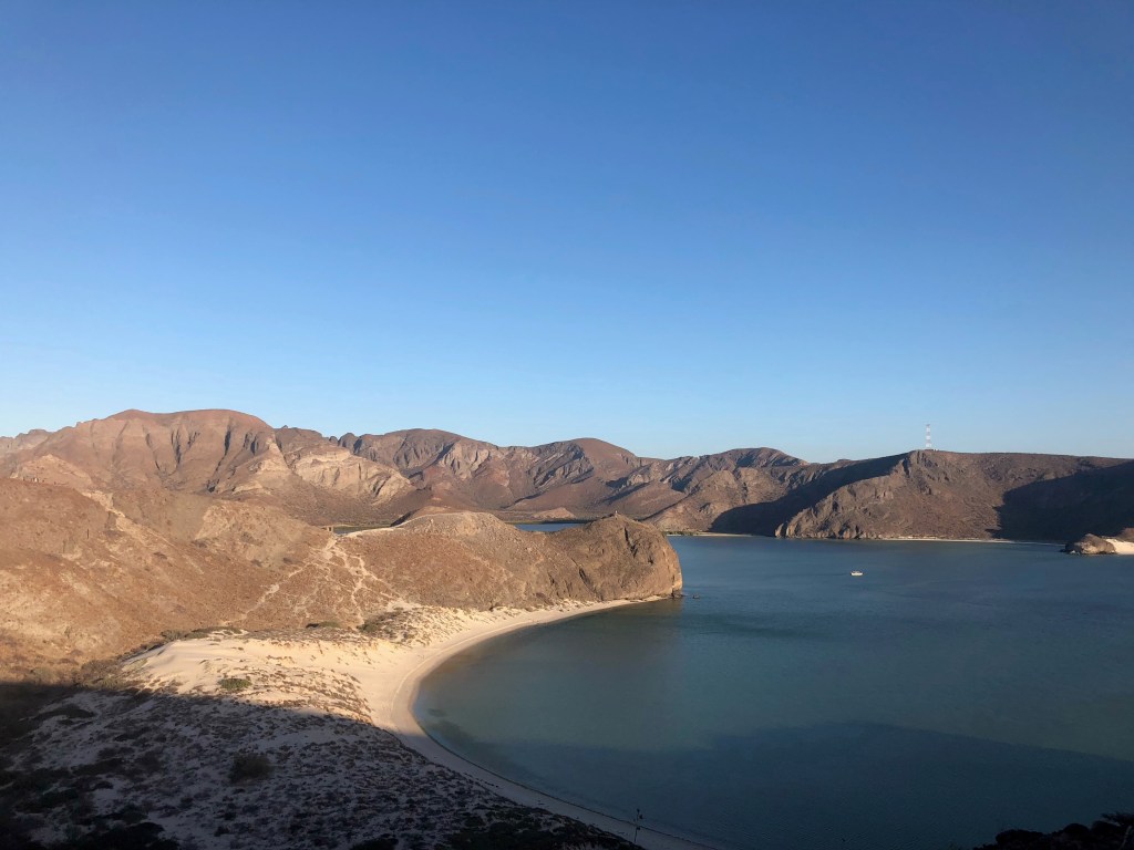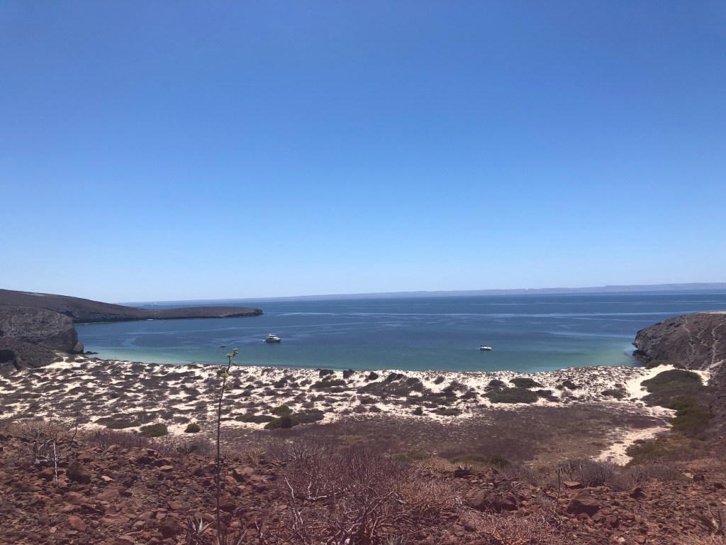 Nous marchons dans les collines environnantes, jusqu’à la playa Escondida, où seuls quelques privilégiés arrivés en bateau profitent de son calme. L’eau est froide, et la visibilité fortement réduite, mais mes acolytes, toutes deux plongeuses aguerries, s’engagent dans une session de snorkeling. Je les suis, et nous contournons la pointe pour nous rendre dans la superbe baie de la playa Ballandra. Là, à faible profondeur, je marche près des rochers, regardant les poissons sergent et trompette slalomer entre les algues sous la surface transparente. Je m’arrête un instant pour converser avec un grand héron bleu, qui ne s’émeut guère de ma présence.