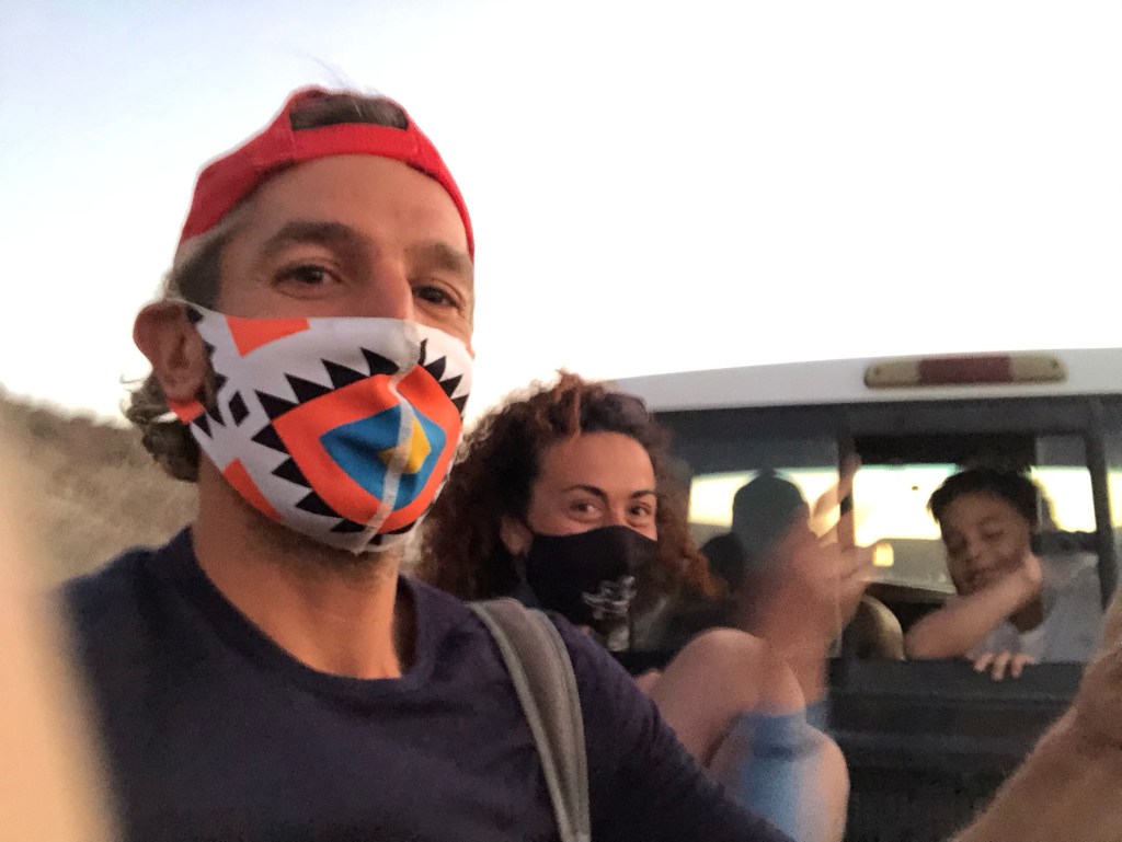 À cette heure avancée, plus de bus pour rejoindre La Paz. Et pas de réseau pour appeler un Uber. Mais nous bénéficions de la magnifique générosité mexicaine : hélé par Fabiana, le pick-up d’une gentille famille de locaux s’arrête et nous grimpons à l’arrière. Kevin, huit ans, à travers une petite fenêtre, fait la conversation à Fabiana, pendant que nous profitons, à l’air libre, des formidables couleurs du soir. Un très joli moment !