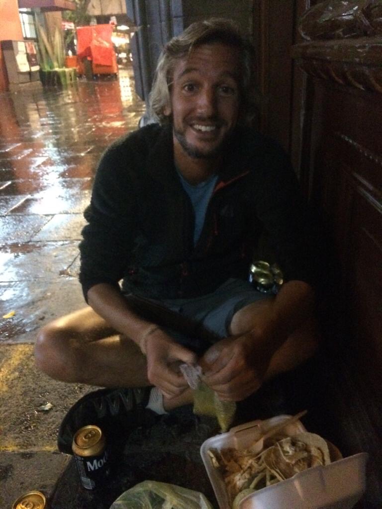 Avant d’escalader l’une des collines pour s’offrir un panorama sur Guanajuato, nous décidons d’attraper au vol un en-cas dans l’un des nombreux stand de « street food » du centre ville. Sans doute rendus impatients par la faim, nous commandons au hasard à la première échoppe venue, et repartons avec de quoi nourrir une famille mexicaine pendant les cinq prochains jours.
