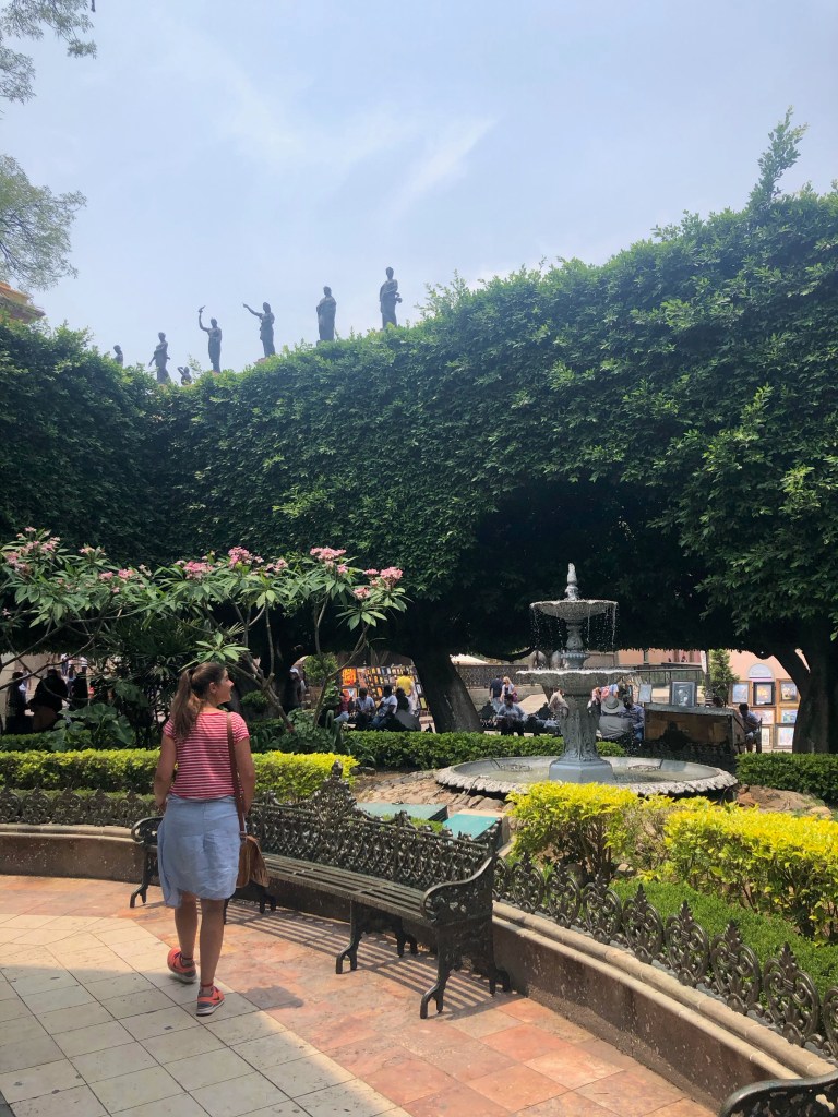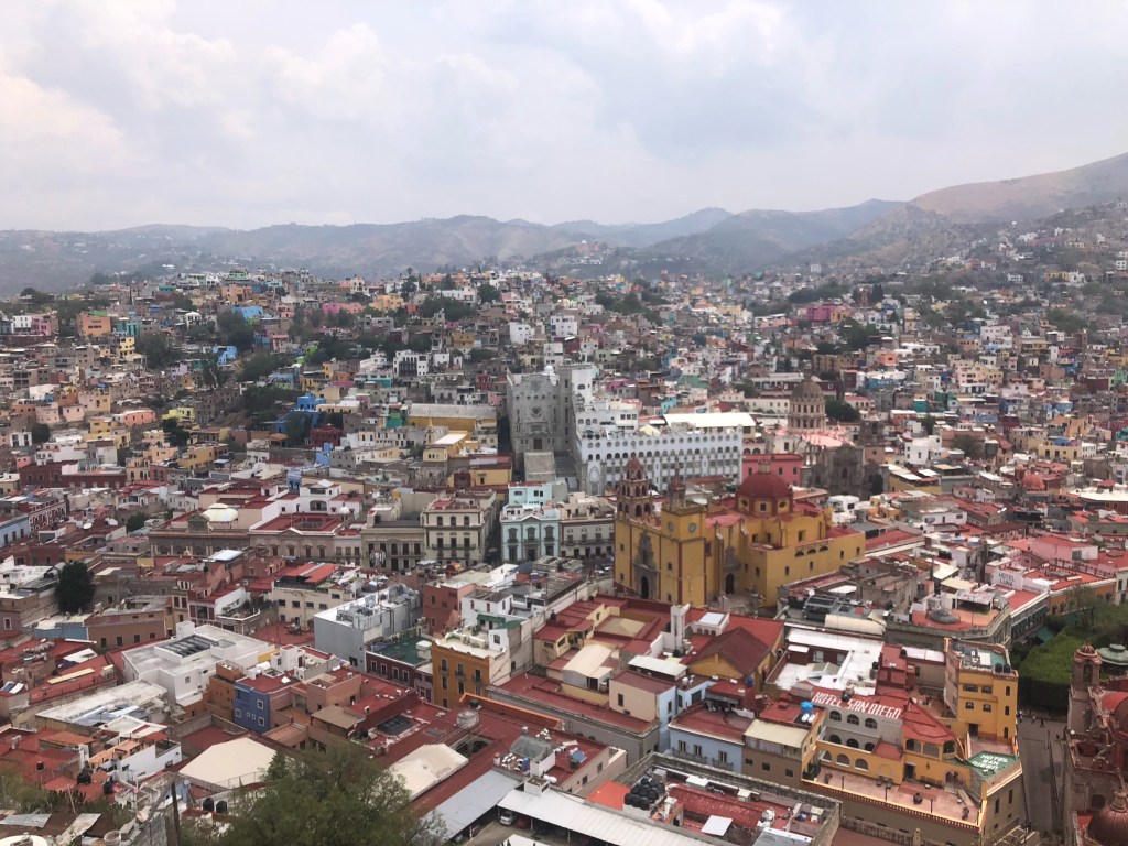 Absorbés, nous n’avons pas vu le temps passé, et bouclons nos valises au pas de courses afin de profiter au maximum de la ville avant le départ de notre bus pour Mexico, à 15h. Nous déambulons à nouveau, dans les rues de Ganajuato, entre nouvelles découvertes et plaisir de retrouver des lieux familiers. Nous trouvons aussi le chemin du véritable Panorama Pipila, qui offre il est vrai une vue prenante sur les principaux monuments du centre. Mais il ne possède pas le charme bucolique du mirador de la veille, et nous sommes ravis de ne pas l’avoir trouvé du premier coup.