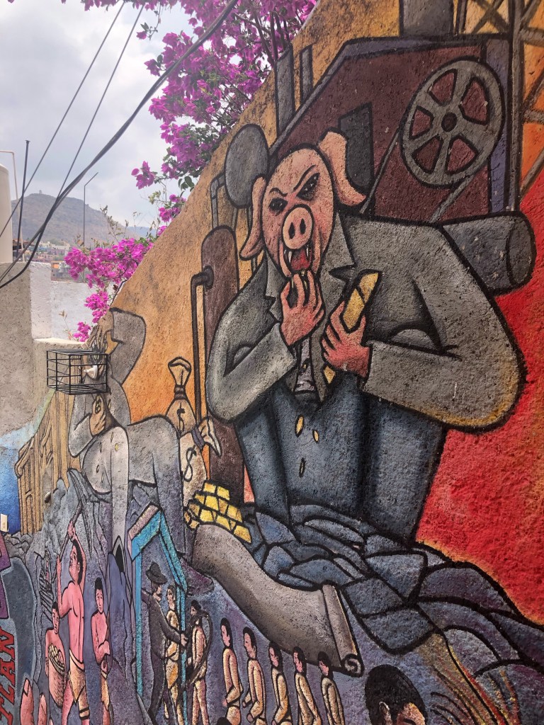 Lundi matin, Casa de Dante. Nous sommes les premiers à descendre à la cuisine, où María s’affaire énergiquement à la préparation de chilaquiles, ces tortillas cuisinées au piment si emblématiques du petit déjeuner mexicain. Nous sommes rejoins à table par un couple suisso-chilien, et nous entamons une discussion classique d’auberge de jeunesse : provenance, itinérance, destination. María sert le café et les chilaquiles, puis, d’humeur bavarde, évoque avec lucidité, douceur, résilience, et humour les travers de son Mexique chéri. Pendant près de deux heures, elle dresse un bilan sombre et pessimiste sur la corruption galopante qui sévit dans le pays, la tragédie des « Ni-ni-ni » (ni diplômés, ni travail, ni envie d’en chercher), et l’aberration des politiques entreprises (rejet des énergies renouvelables, non-stimulation des initiatives…). Elle regrette aussi que les nombreux milliardaires de son pays n’investissent pas localement, et que les mexicains continuent à regarder Europe et USA les yeux plein d’envie et de complexes. Le tout en puisant dans l’histoire du pays des explications poignantes à ces comportements. Véritablement passionnant ! Triste aussi, brutal. Mais dans ces petits yeux rieurs, on devine une pointe d’espoir, d’optimisme peut-être, et en tout cas une formidable envie d’agir.