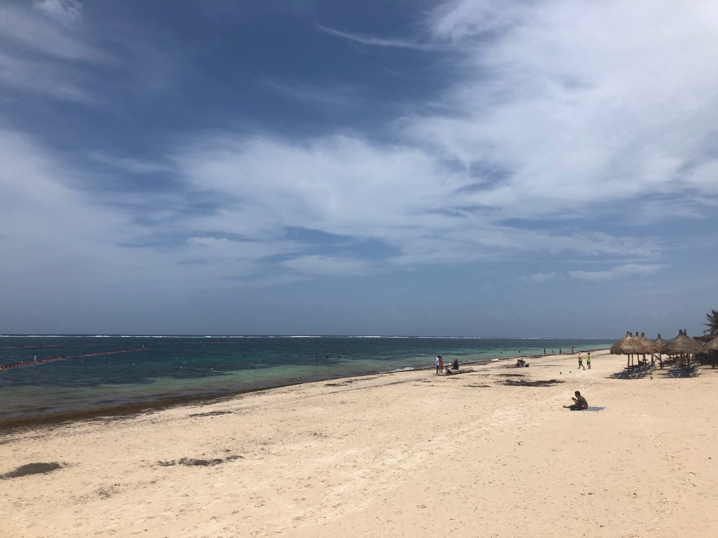 Mercredi matin, Mexico City. Nous quittons notre Airbnb sans avoir aperçu notre hôte, et sautons dans un taxi pour l’aéroport. L’avion pour Cancun est étonnamment plein, en grande partie de Mexicains en route pour la Riviera Maya. À la descente de l’avion, nous sommes saisis par l’humidité, qui fait régner une chaleur moite, et surpris par l’ambiance de fête adolescente. Sur le parking résonne une musique assourdissante de boîte de nuit, les tours opérateurs se bousculent pour vendre leurs escapades, et les touristes enchaînent les cocktails en attendant leur minibus. Pas vraiment la tranquillité que nous étions venus chercher, mais l’aéroport international de Cancun est un interlude divertissant.