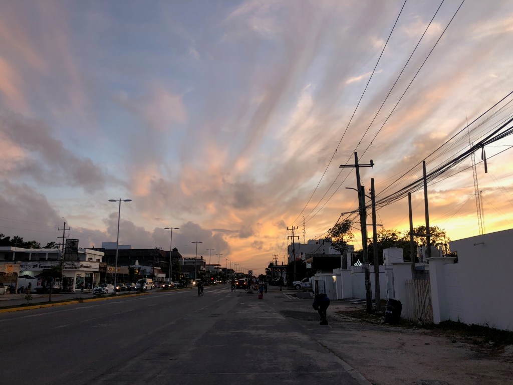 Nous prenons le bus pour le centre-ville, puis, pas encore sûrs de notre programme des prochains jours, nous montons dans un collectivo pour Puerto Morelos, une petite ville côtière à mi-chemin entre Cancun et Tulum. Là, après cinq minutes de marche qui nous valent quelques litres de transpiration, nous faisons halte au Pescao café, afin de nous rafraîchir d’une agua de sabor et de chercher un abri pour la nuit. Nous trouvons aux confins de la ville, chez Mario, une jolie chambre munie d’un petit balcon qui donne sur la forêt. Mario met sa cuisine à disposition, nous passons donc au Chedraoui du coin pour faire le plein de bonnes choses pour le dîner gourmet du soir. Les kilomètres à parcourir pour rejoindre la chambre sont une épreuve sous pareille chaleur, mais nous parvenons tout de même à destination.