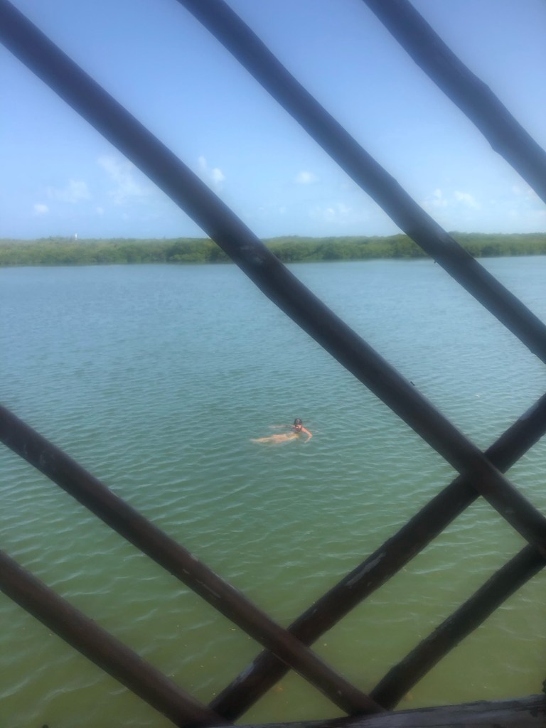 Dimanche matin, Punta Allen. Rythme caribéen aujourd’hui. Je me lève longtemps après le lever du soleil, puis peine à trouver du wifi pour appeler maman, en ce jour de fête des mères. La connexion est bien faible, mais je parviens tout de même à échanger quelques mots avec elle. Nous petit-déjeunons de fruits frais, en contemplant le large. Nous passons à la Tienda Azul, où nous faisons désormais office d’habitués, et marchons vers notre résidence secondaire pour y passer un après-midi paresseux. L’endroit est aussi beau et calme que la veille. Entre deux bains dans la lagune, j’écris, dors, puis lis, dans une réplique fidèle de l’après-midi précédente. Nous quitterons cette pépite de Punta Allen demain matin, nous profitons donc de ce cadre exceptionnel sans culpabilité jusqu’à la venue du soir.