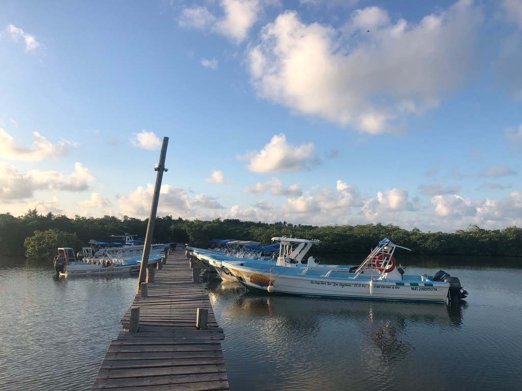 Lundi matin, Punta Allen. À 5h30, le soleil n’est pas encore levé, mais le ciel revêt ces couleurs secrètes connues des seuls lève-tôt. Les yeux pleins de sommeil, nous plions bagages, tentant d’emporter avec nous le moins possible de sable de Punta Allen. Les jolis souvenirs nous suffirons.