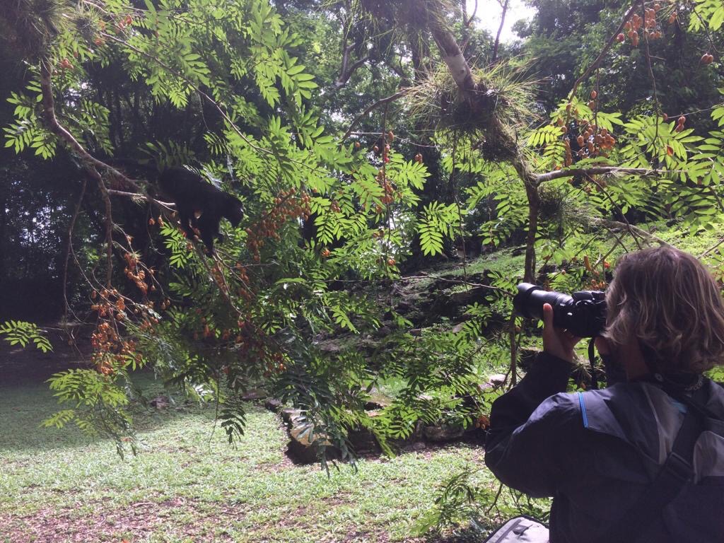 Au sortir du temple, nous reconnaissons le coassement des toucans : une demi-douzaine de keel-billed se posent dans l’arbre gigantesque qui trône au centre de la plaza ! Autre miracle, le groupe avec qui nous partagions le site a disparu, comme aspiré par quelque sort antique, et nous sommes seuls au monde. Nous arpentons les rues de la cité dormante au seul son des singes hurleurs qui sévissent non loin d’ici.