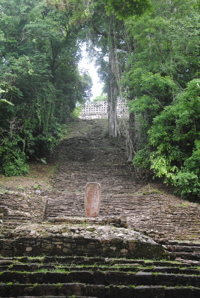 Au moment de fouler à nouveau la grande plaza me reviennent les émotions intenses de ma découverte du lieu, il y a déjà trois mois. Je suis heureux d’être là, mais je ne m’attends certainement pas à revivre un moment d’une telle intensité. Et pourtant…La magie revient, d’abord au détour d’une visite clandestine du « labyrinthe », un édifice alambiqué où nous nous perdons dans les sombres couloirs…Chauves-souris et fantômes des prêtres mayas nous indiquent tout de même la sortie, après de fantastiques minutes dans la peau d’Indiana Jones.