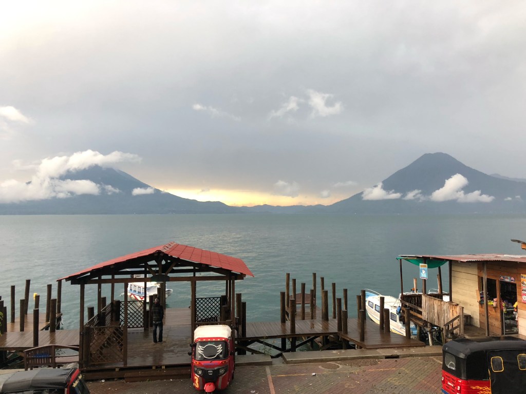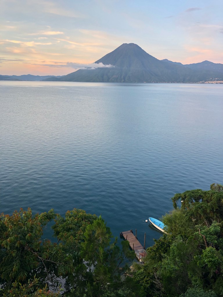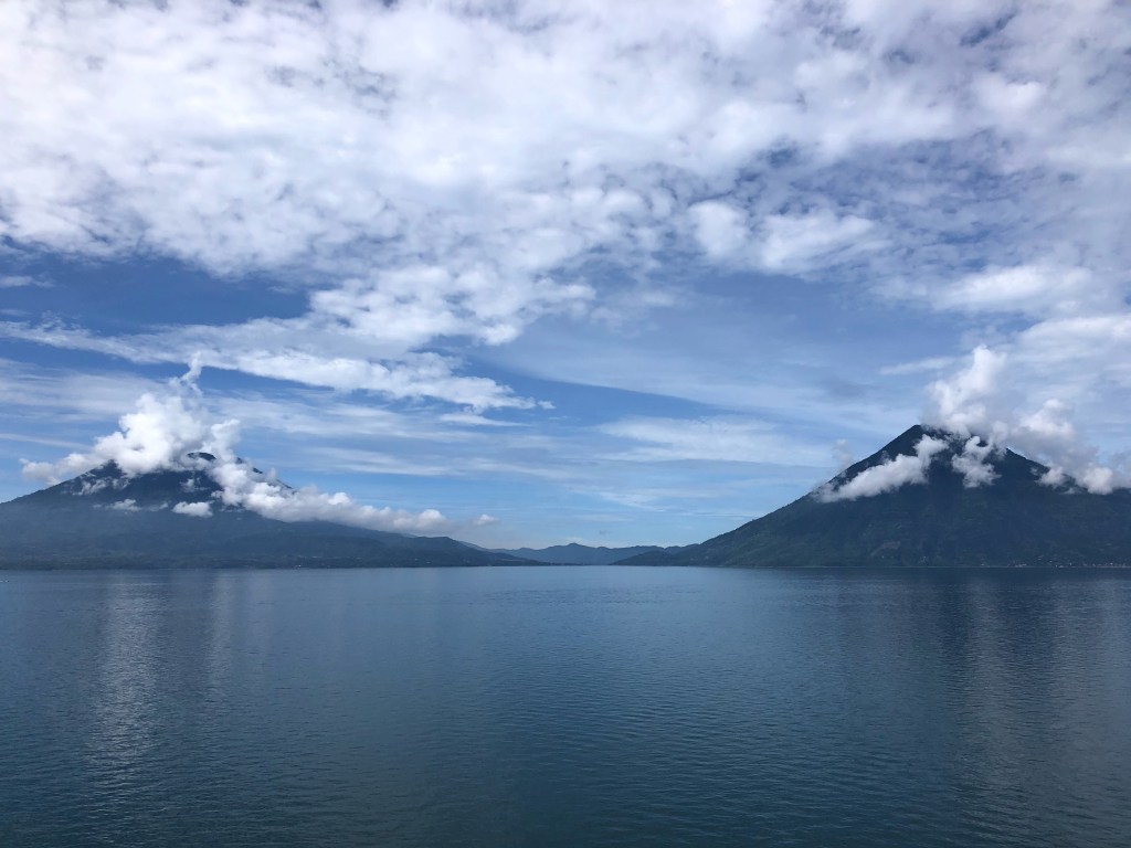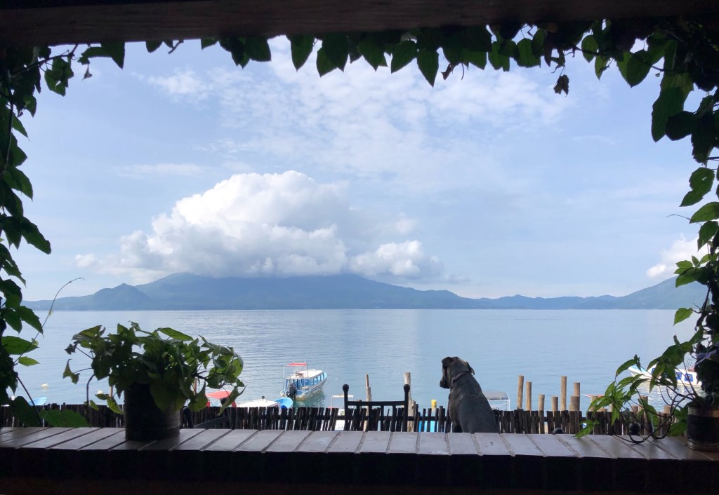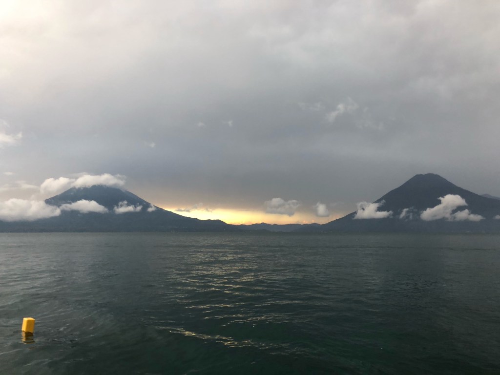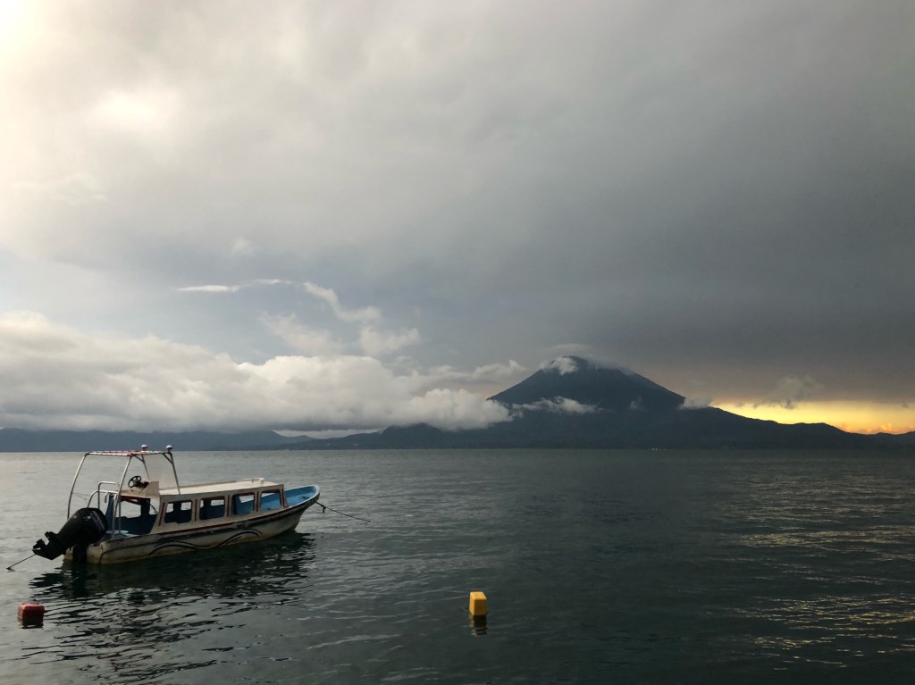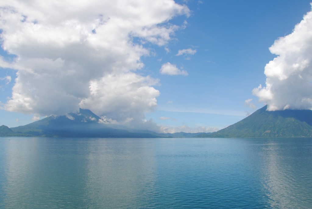 Dimanche matin, Lac Atitlan. Il fait gris, et les deux volcans noirs sont comme les yeux d’un crocodile émergeants des eaux couleur encre du lac. En attendant l’éclaircie, je travaille sur le blog, malgré une connexion des plus faiblardes.