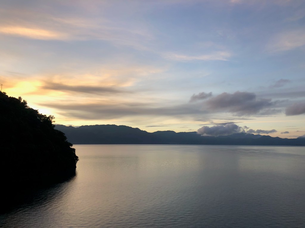 Mercredi matin, Casa del Mundo. Il est 5h30. J’ouvre un œil, et écarte doucement les rideaux. Le lever de soleil sur le lac est exceptionnel ! Je m’éclipse en douceur de la chambre, et me promène dans les allées silencieuses de l’hôtel, en me délectant du paysage.