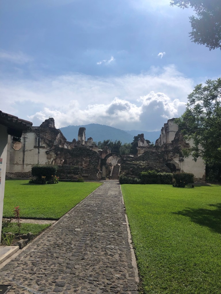 À l’issue de quelques-unes de ces scènes spectaculaires, nous arrivons à destination. La ballade à travers les rues d’Antigua nous fait oublier notre mal au cœur. Quelle ville superbe ! Remarquablement restaurées, les maisons coloniales arborent fièrement leurs couleurs vives, dans des rues pavées où se succèdent boutiques et restaurants décorés avec goût. Surtout, la cité est pleine de ruines grandioses, couvents, églises, et cathédrales victimes des tremblements de terre du XVIIIème siècle. Loin d’être anachroniques, ces reliques sublimes d’un passé glorieux semblent comme une évidence, faisant corps avec la ville dans une harmonie magnifique. Sous le charme, nous marchons les yeux écarquillés jusqu’à la Maison Bougainvillea.