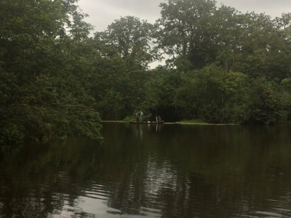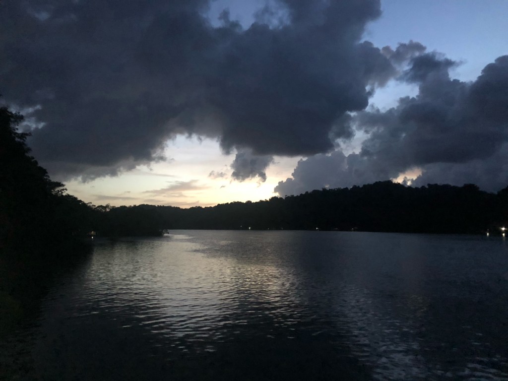 La lancha est en retard, et nous l’attendons en regardant les aigrettes nettoyer les filets des chalutiers amarrés aux pontons. Le pilote arrive enfin, et après avoir quasiment coulé le kayak, nous le hissons à bord et faisons route vers la Round House. La baignade y est plus agréable qu’à Livingstone ! Nous attendons le repas en bouquinant tranquillement sur notre petite terrasse. Carlos et Jorge nous attendent à 19h, et nous bavardons avec le premier en attendant que le second nous apporte nos plats. La fratrie rejoint elle aussi la grande terrasse circulaire de la round house, et commence une partie de petits chevaux. La soirée promet d’être plus calme que la précédente…