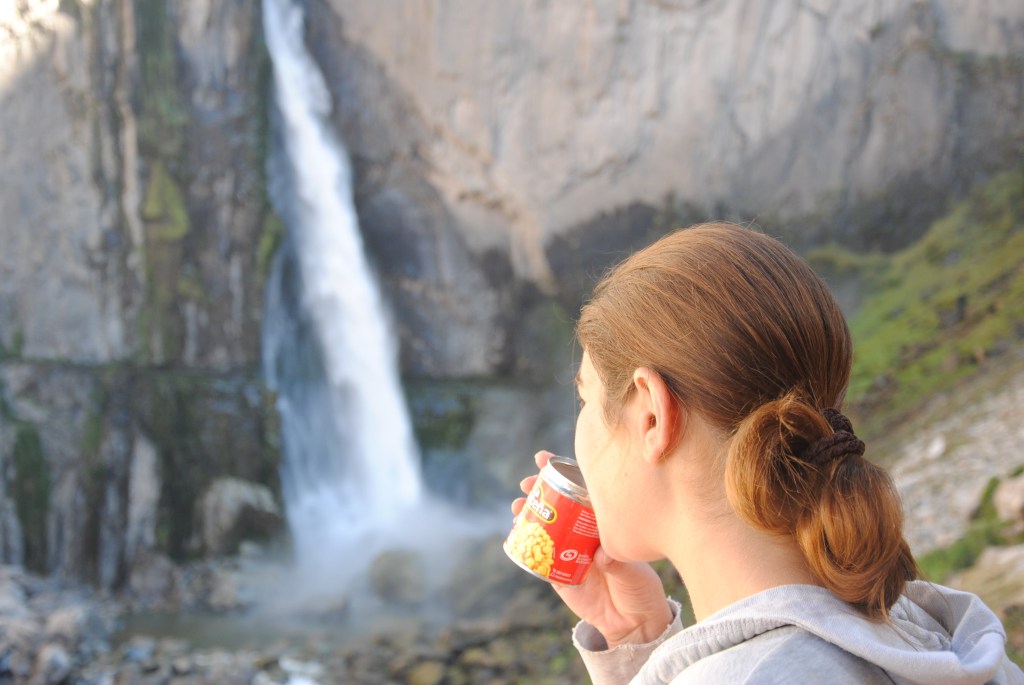 La descente sur Sangalle est magnifique. De l’autre côté du canyon, une incroyable cascade coule, entourée d’un tapis vert épais, sur lequel on s’allongerait bien si la pente ne frôlait pas les 180 degrés…On se croirait dans Avatar !