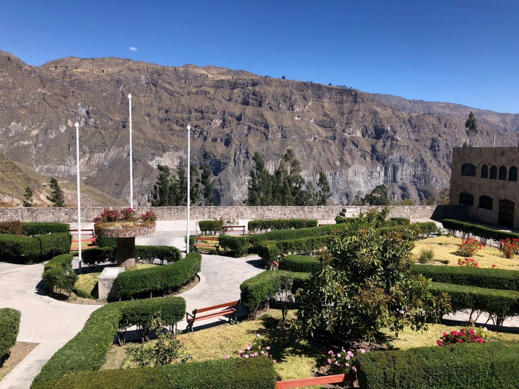 Sur la plaza de armas, nous trouvons le bus direct pour Arequipa. Il ne part qu’a 13h30, ce qui nous laisse le temps d’aller déjeuner. Le restaurant, familial, est à l’étage et dispose ainsi d’une vue splendide sur les montagnes enneigés de l’autre côté du canyon. Nous trinquons à l’achèvement d’une inoubliable randonnée dans le canyon de Colca. Nous avons rayonné dans un périmètre restreint, ce qui nous a permis de nous régaler du paysage unique. Et puis, nos trois campements ont été si différents qu’ils nous ont apporté une sacré dose de variété !