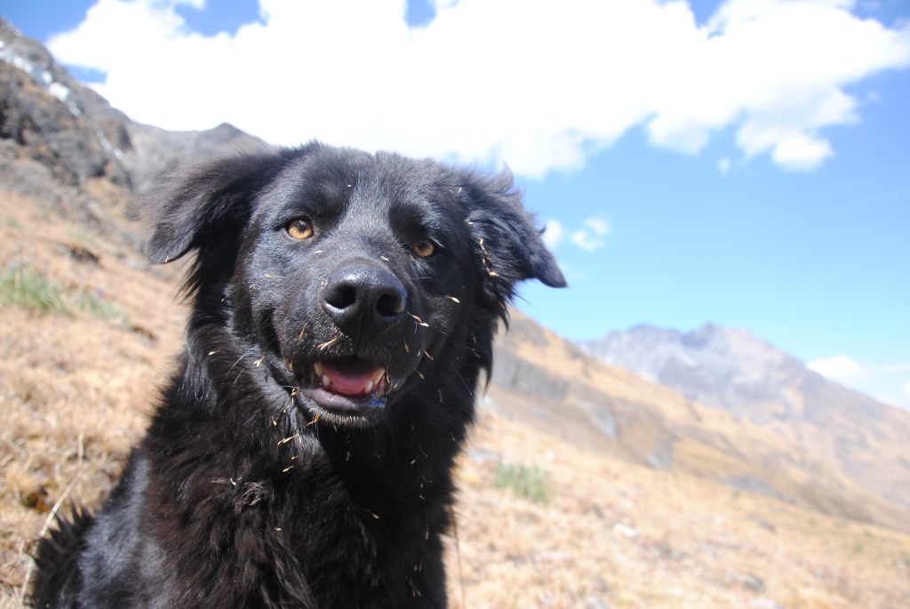 Après un long interlude culinaire et contemplatif, nous nous remettons en marche, rejoins par un nouveau compagnon. Colinou (copie conforme de Colin, en plus petit) a en effet délaissé un couple de randonneurs plus lents pour se glisser dans nos pattes. Une brume disparate descend des sommets, donnant une atmosphère inquiétante à la vallée. De grosses roches pointues façon Mordor achèvent de nous projeter en Terre du Milieu…