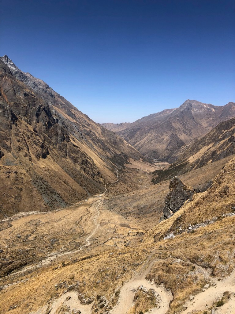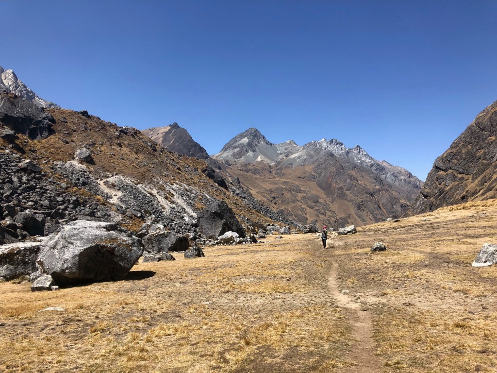 Et nous avons le bonheur de l’avoir en ligne de mire jusqu’à l’arrivée au hameau de Soraypampa. Situé à la jonction de deux vallées, le petit patelin nous restitue le terrible Salkantay perdu de vue ce matin. Humantay et Salkantay se toisent, comme deux frères géants animés d’un esprit de compétition fraternel. Magique. D’autant qu’avec des noms pareils, on nage en plein Tolkien.