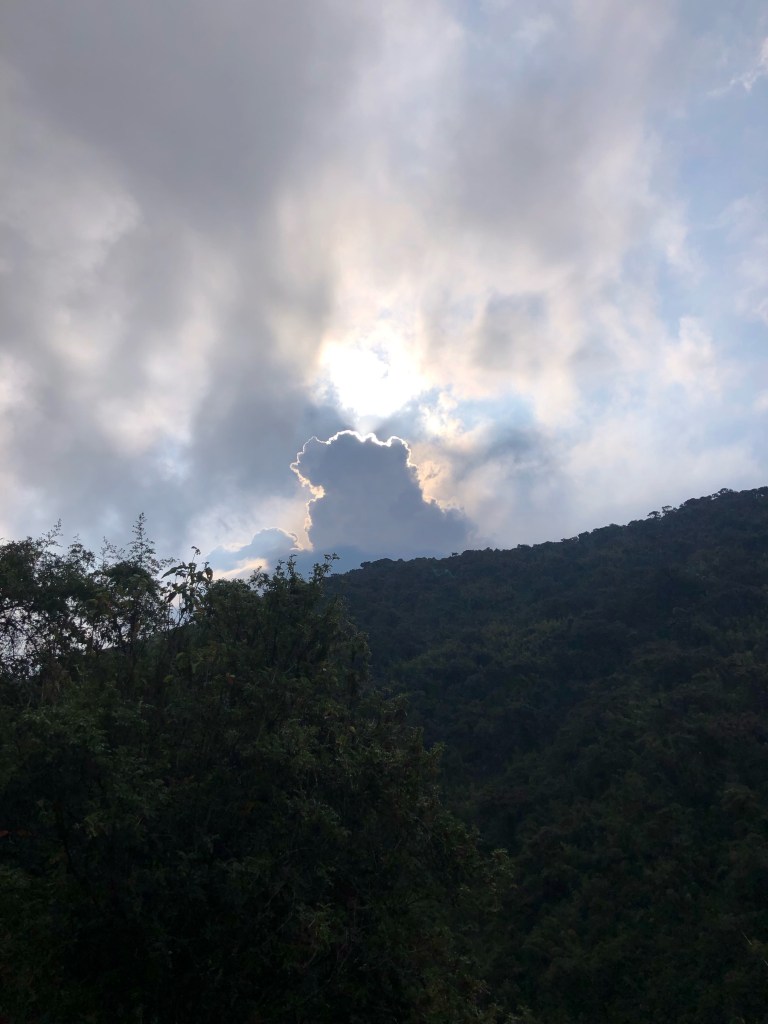 Là, malgré la radio qui crépite dans la cuisine, nous ne trouvons personne. Nous explorons la propriété à la recherche des tenanciers, et trouvons finalement la patronne, pantalon sur les chevilles, qui s’habille au sortir de la douche. Surprise, mais surtout amusée, la joviale patronne nous mène à une belle chambre, qui dispose d’une vue imprenable sur le Machu Picchu. Nous sommes comblés ! Après une bonne douche presque chaude, nous nous rendons dans le vaste « comedor » pour le dîner, que nous ne partageons qu’avec une paire de chiens hirsutes. Le repas est gargantuesque, et malgré mon estomac déjà plein du festin de midi, je fais honneur aux innombrables plateaux déposés devant nous. Sans parvenir toutefois à bout de chacun d’eux, comme me le fait remarquer notre hôte dans un reproche teinté de taquinerie. Nous prenons rendez-vous pour le lendemain matin à 7h, pour la collation matinale, et rejoignons notre chambre avec vue. Épuisés, et heureux, nous nous endormons bien vite dans ce petit paradis.