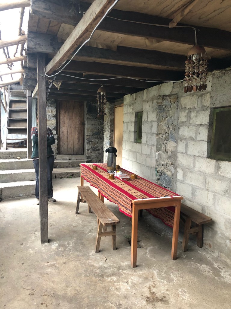 Chaullay finit par se montrer, petit hameau somnolant surplombant deux vallées vertes mais drôlement sèches. Quelques bâtisses vétustes paraissent accueillir les voyageurs. Nous nous arrêtons à l’une d’elles, et poursuivons autour d’une bière la conversation avec Vlyn et Domi. J’apprends amusé que les deux jeunes français étudient à l’ESCP. Le monde est décidément bien petit ! Curieux, bienveillants, et plein d’énergie, le couple s’avère une formidable compagnie. Le cercle s’élargit au moment où Pierre et Carlota nous rejoignent. Nous sommes heureux de partager ce morceau d’aventure avec de sympathiques compatriotes !