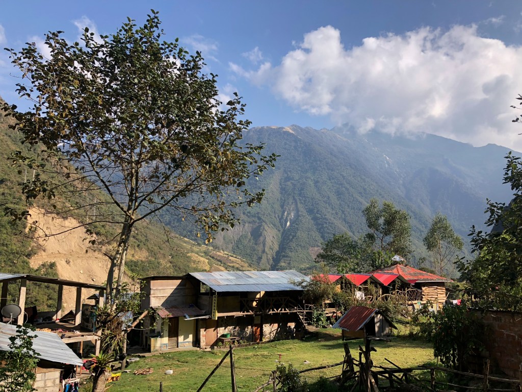 Nous passons le village, et arrivons peu après dans le hameau éparpillé de Lucmabamba. Là, nous tombons sur Vlyn et Domi, qui attendent l’ouverture d’un restaurant-producteur de café. Nous nous promettons de nous recroiser plus tard, et entamons l’ascension jusqu’à Llactapacta.