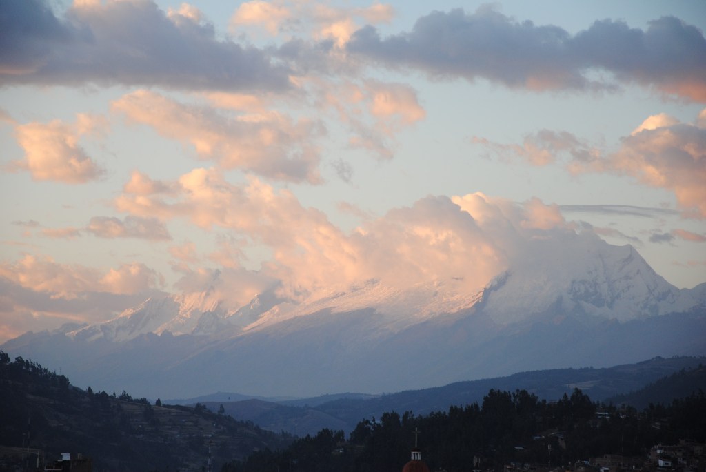 Samedi matin, Huaraz. La ré-acclimatation à la vie civile est difficile. Le contre-coup s’exprime chez Arlette d’une manière tout à fait désagréable. Sans doute, notre repas gargantuesque de la veille n’était pas l’idée du siècle…Sa nuit a été très perturbée, et la jeune femme souffre de maux de ventre, sans jamais se plaindre, comme à son habitude. Alors qu’Arlette se repose afin de récupérer, je travaille à la publication de quelques articles. Puis je sors prendre l’air dans les rues ensoleillées de Huaraz, flânant le nez en l’air, le regard posé sur les sommets environnants. À mon retour, Arlette va un peu mieux. Nous dînons (modérément), avant de nous allonger devant un film, et de nous endormir…