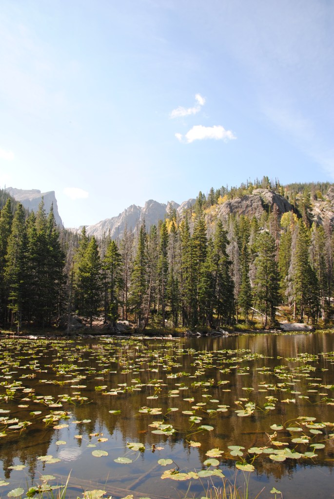 Vendredi matin, Longmont. J’ai dormi comme un bébé. Néanmoins à mon réveil je me demande où je suis, et surtout où est Arlette. Le soleil perce à travers les stores vénitiens, dévoilant ses hautes lumières sur les murs de ma chambre. Je suis chez Sylvie dans le « Colourful Colorado », et Arlette est arrivée à Dortmund la veille. Les idées claires, je me fait couler un café alors que Sylvie me rejoint. Nous poursuivons notre bavardage, puis mettons les voiles vers notre première excursion : le Rocky Mountain National Park. Nous faisons halte à l’hôtel Stanley, institution de la région qui a servi de décor à la série «Shining » à la fin des années 90. Grande bâtisse de bois aux intérieurs luxueux, l’hôtel est posé dans un cadre superbe, au pied de montagnes recouvertes de pins. Loin des hallucinations sanglantes du roman de Stephen King, l’ambiance est douce et tranquille dans la grande salle lumineuses dans laquelle nous déjeunons.